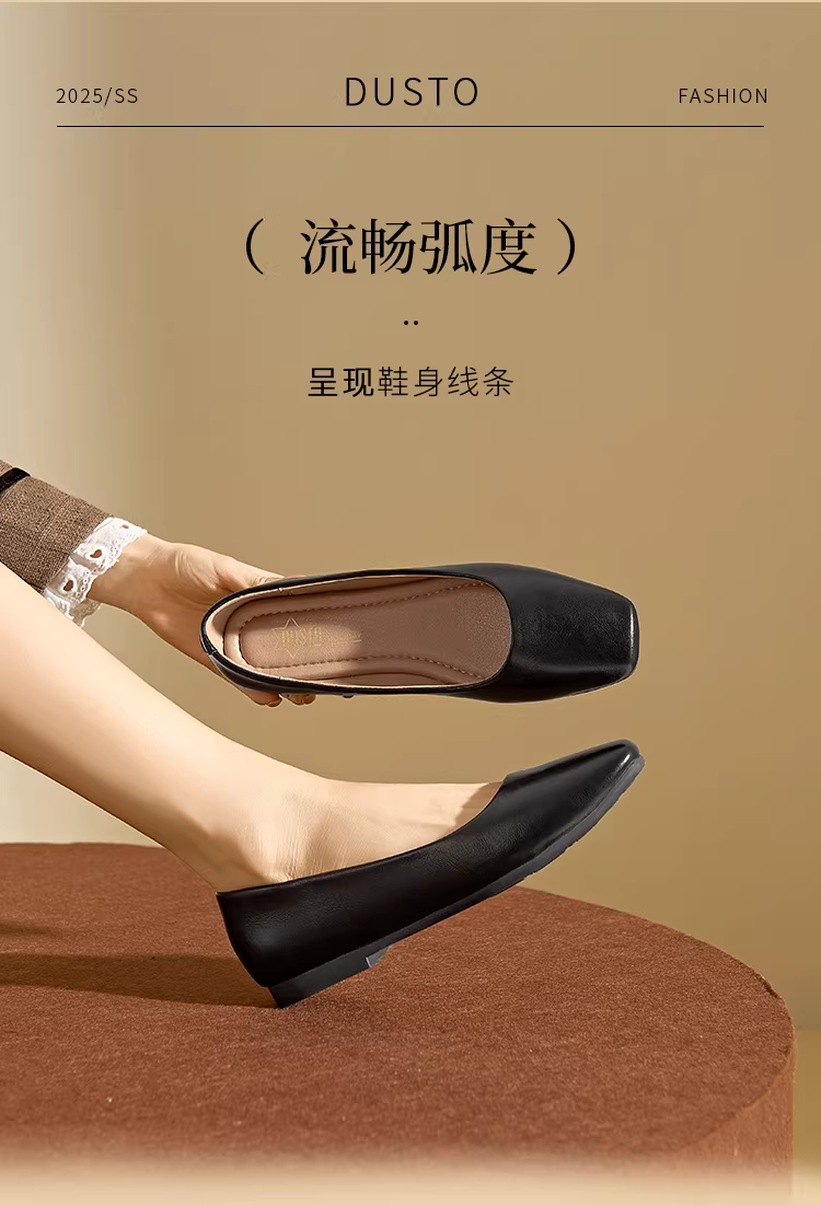 - Giày đơn nữ Dadongfang 2025 mới mùa thu, giày đế bằng đế mềm, thoải mái và không gây mỏi cho bàn chân, giày đi làm màu đen.