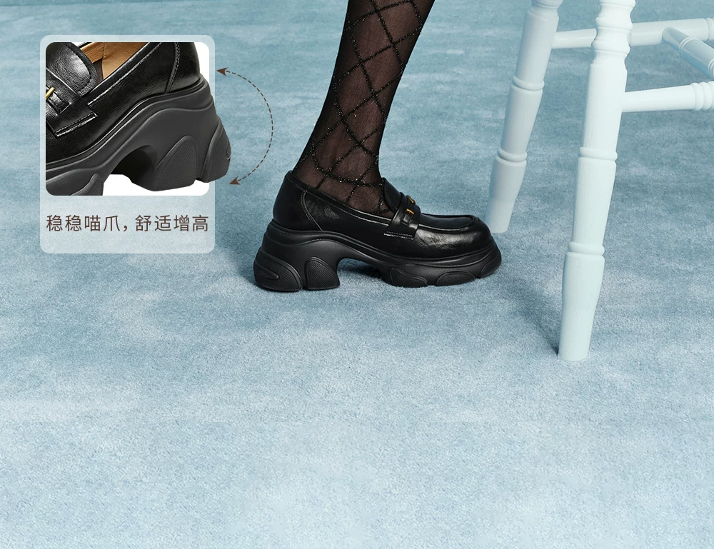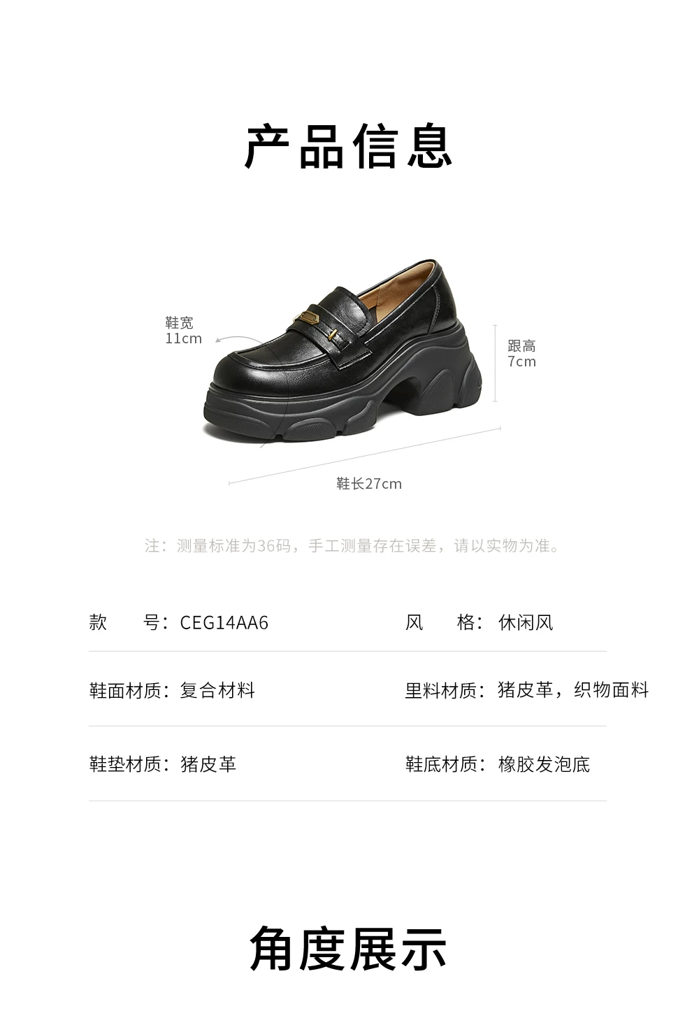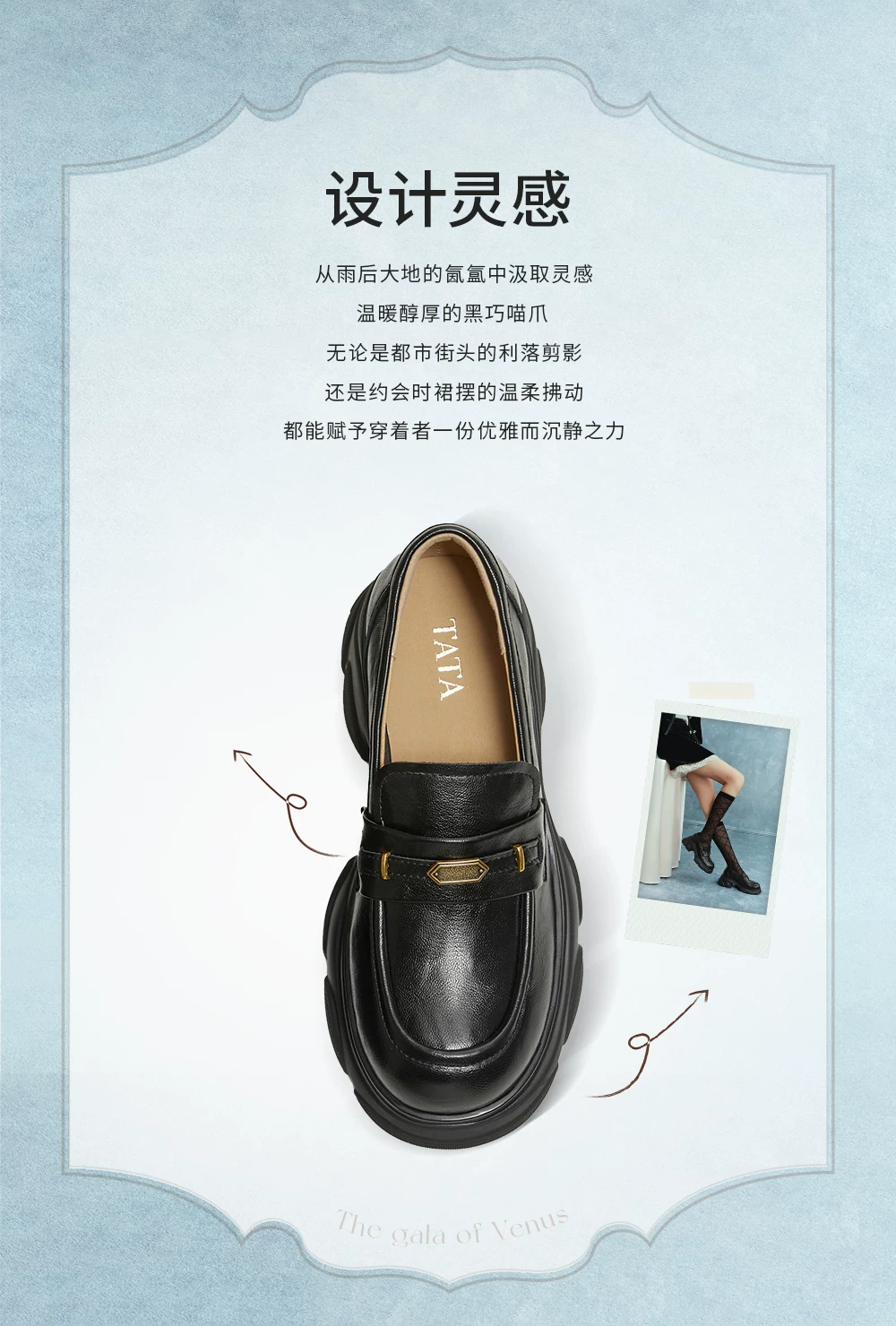 - Giày Loafer mũi vuông màu đen TATA Giày thời trang nữ thông thường Giày đế dày đa năng CEG14AA6