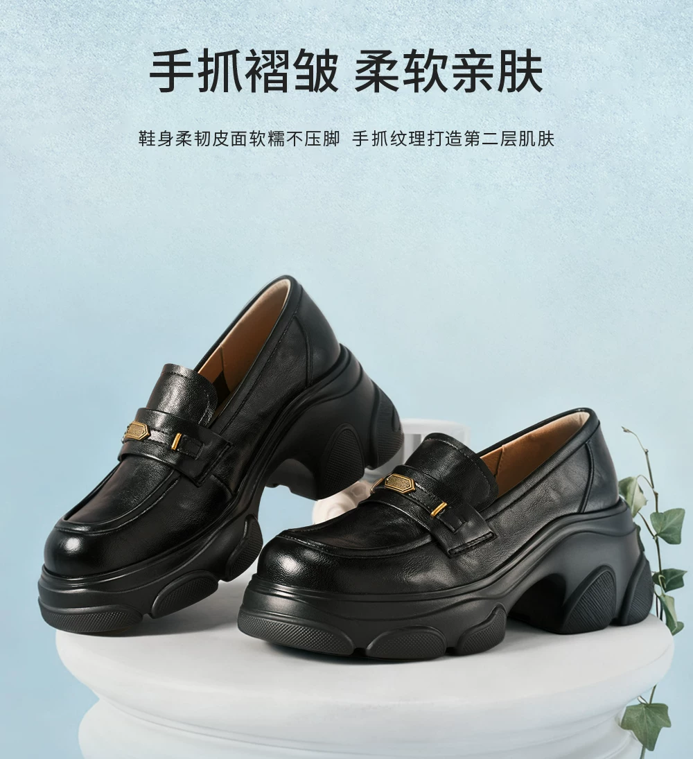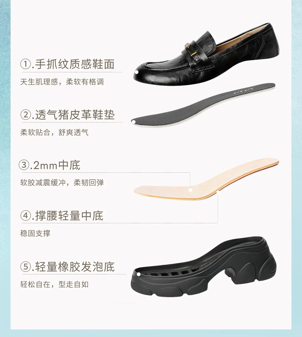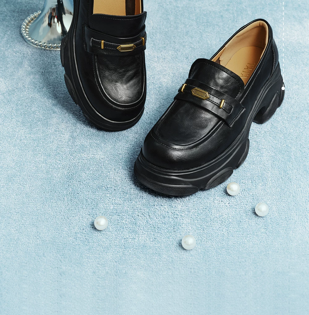 - Giày Loafer mũi vuông màu đen TATA Giày thời trang nữ thông thường Giày đế dày đa năng CEG14AA6