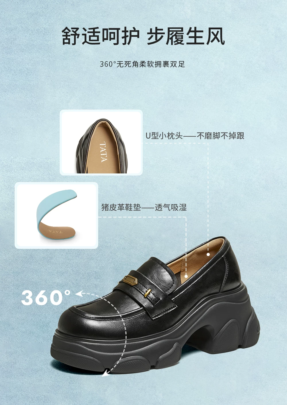 Giày Loafer mũi vuông màu đen TATA Giày thời trang nữ thông thường Giày đế dày đa năng CEG14AA6