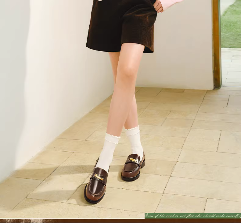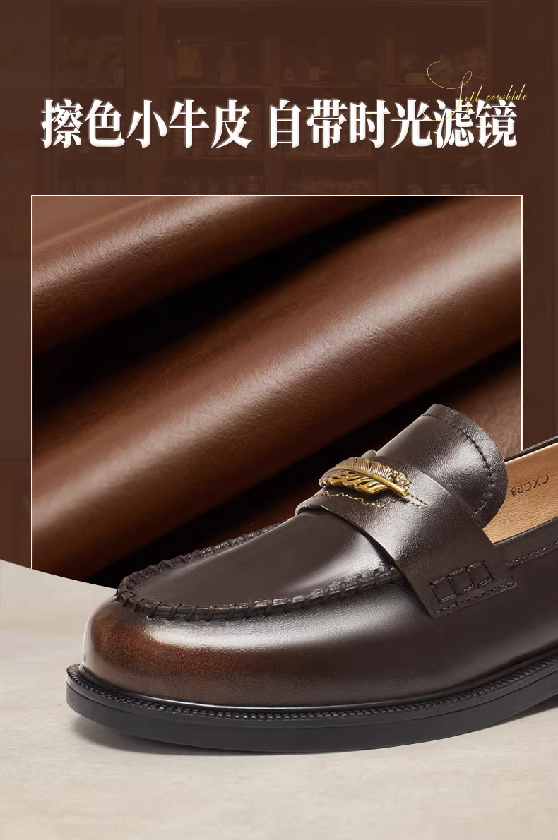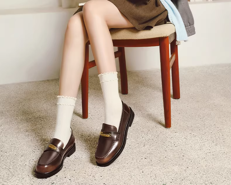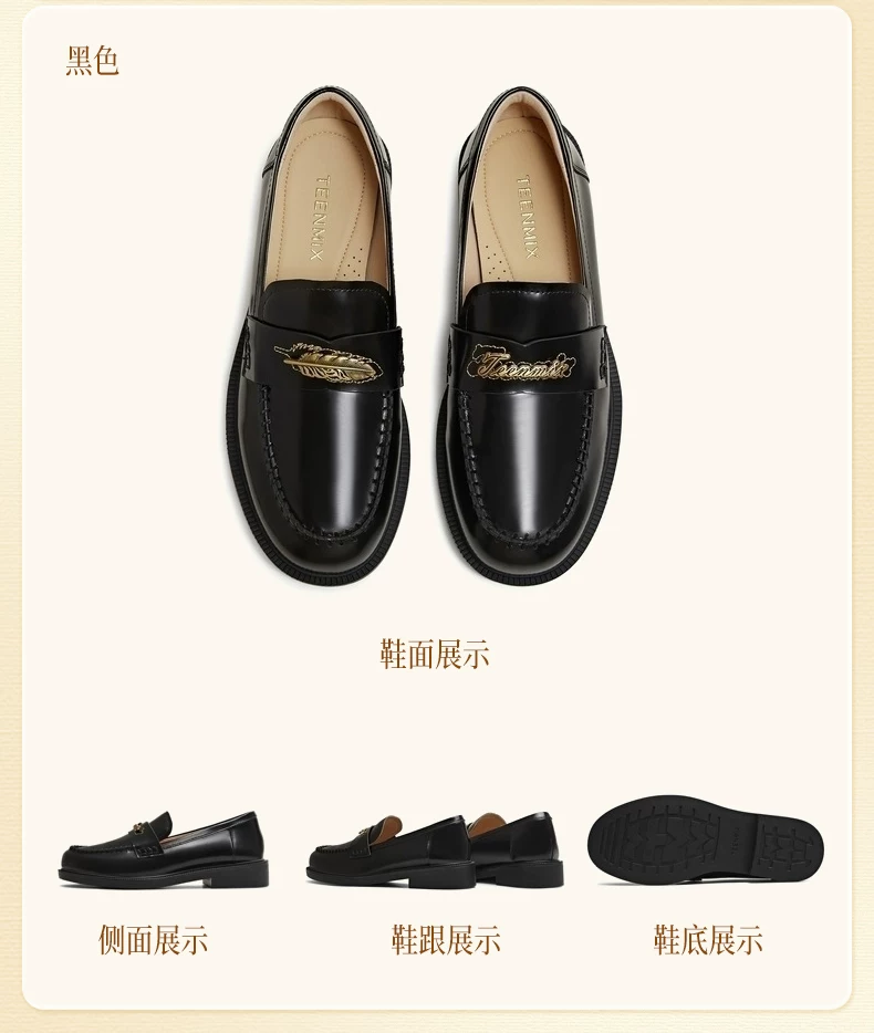 - Giày Loafer Nữ Tianmeiyi Golden Feather Flat British Ivy đế mềm bằng da, kiểu dáng mới Xuân 2026