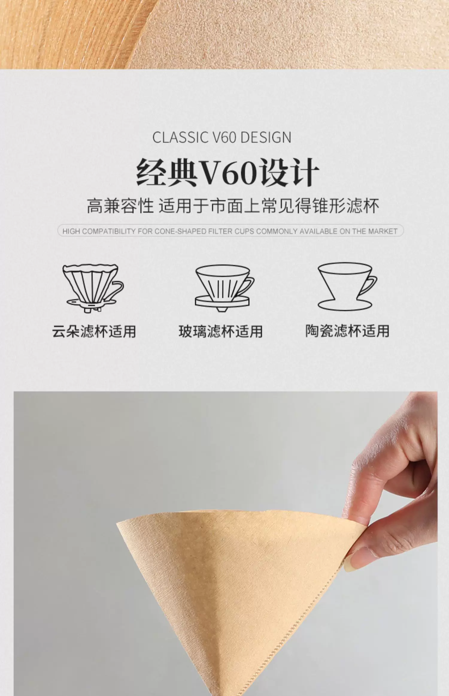 Giấy lọc cà phê Giấy lọc cà phê pha bằng tay Giấy lọc hình quạt Giấy lọc nhỏ giọt Lưới lọc cốc Máy pha cà phê kiểu Mỹ Giấy lọc hình nón v60