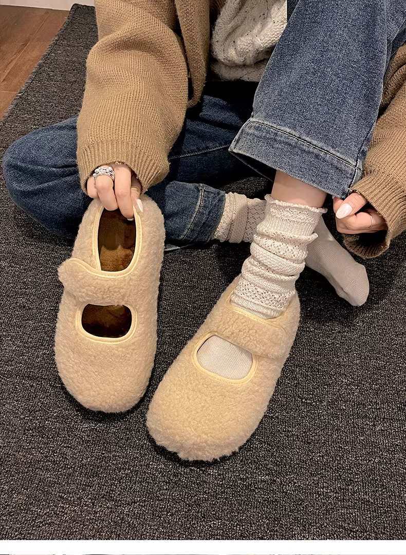 - Giày lông dày đế dày màu xám Nan Zai Nan dành cho nữ, mẫu mới mùa thu đông 2025, giày bông kiểu Birkenstock giữ ấm khi đi ngoài trời.