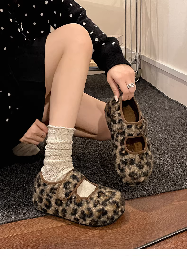 Giày lông dày đế dày màu xám Nan Zai Nan dành cho nữ, mẫu mới mùa thu đông 2025, giày bông kiểu Birkenstock giữ ấm khi đi ngoài trời.