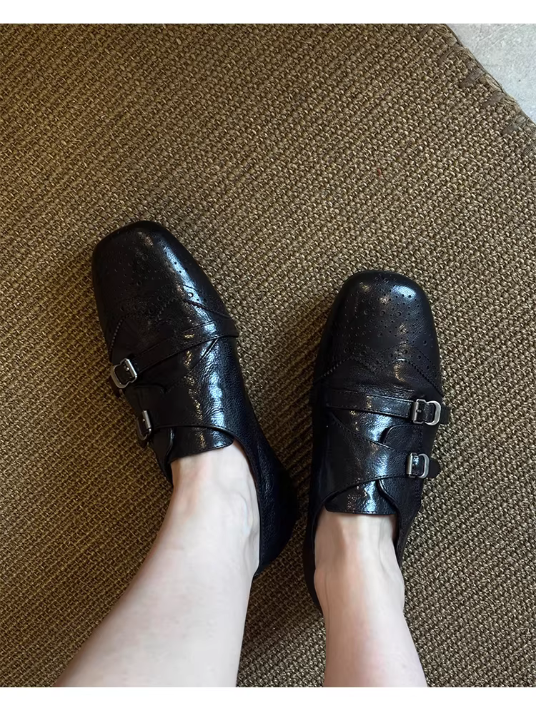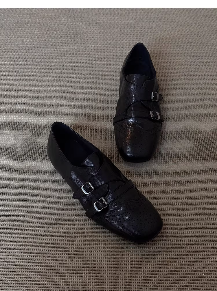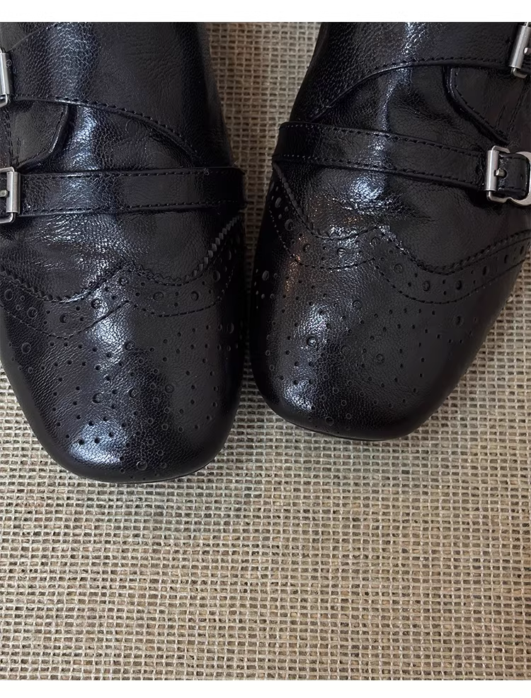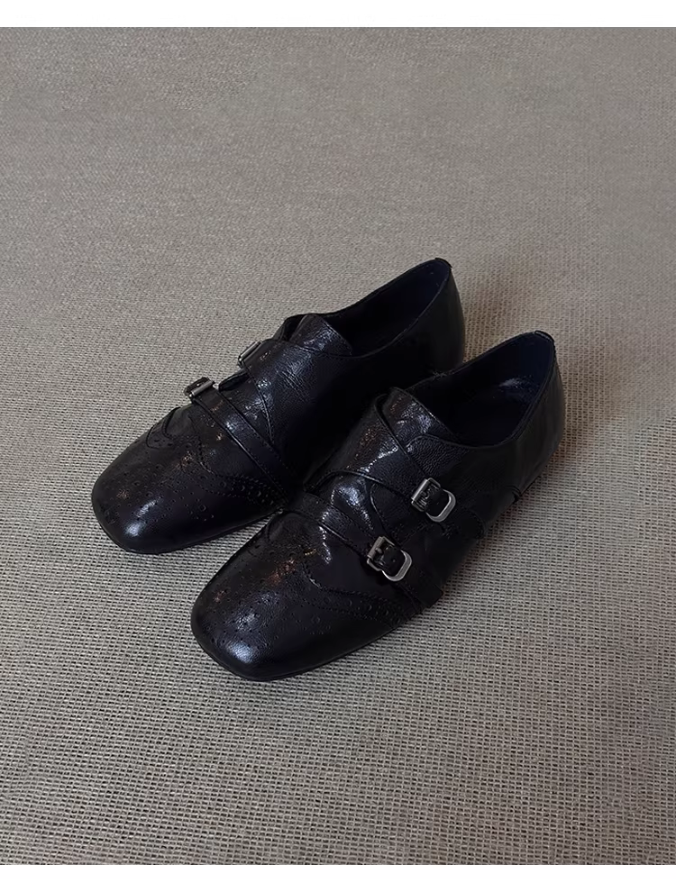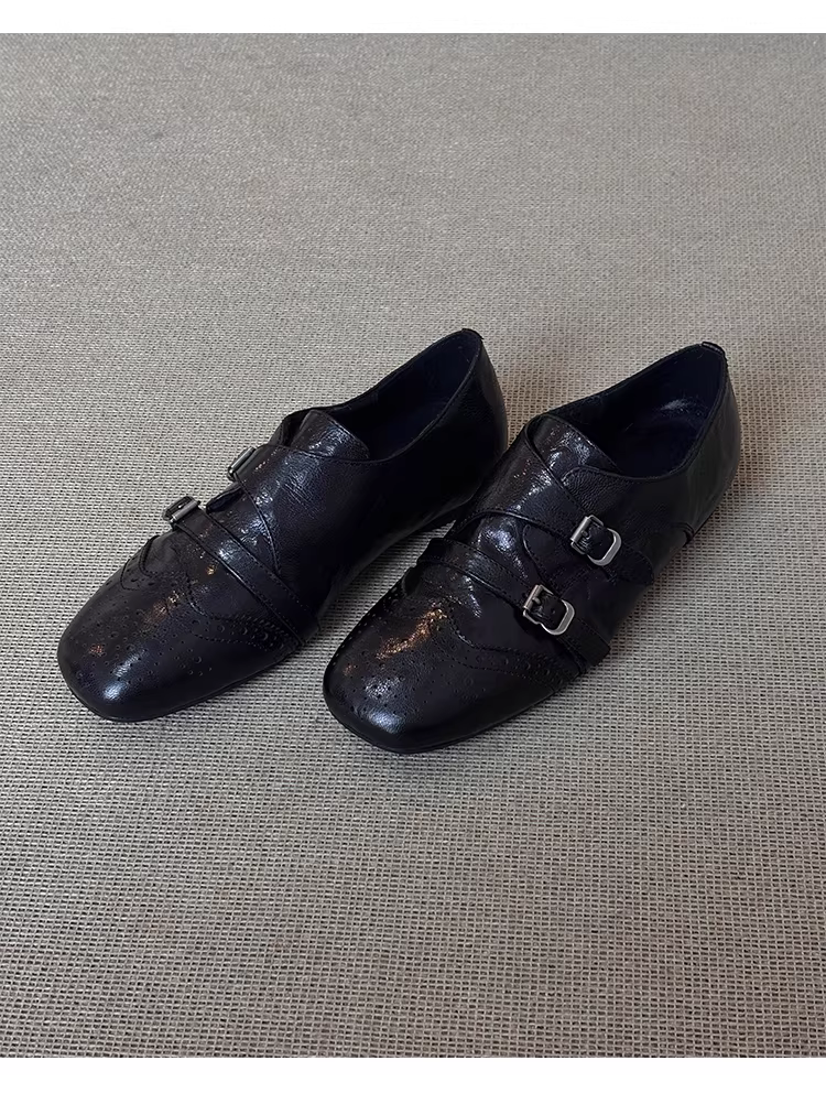 - Giày lười da thật kiểu brogue đế bằng, chất liệu da cừu, mũi vuông kiểu Pháp có khóa, kiểu dáng Anh quốc, giày da nhỏ xinh dành cho nữ