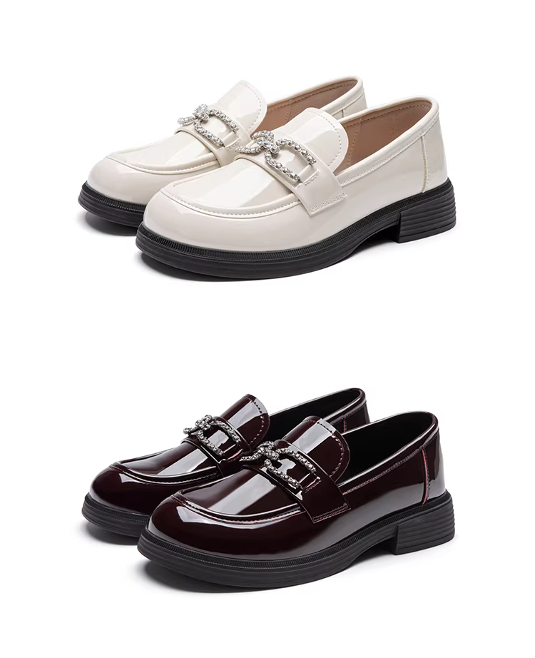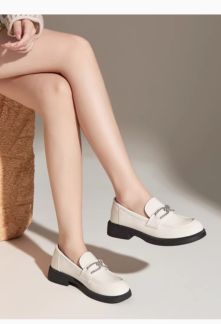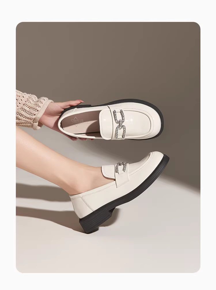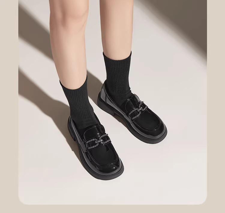 - Giày lười đế dày Dadong dành cho nữ 2025, mẫu mới thu đông, chất liệu da bóng, kiểu dáng công sở, màu đen, gót dày, phong cách Anh, giày da nhỏ gọn.