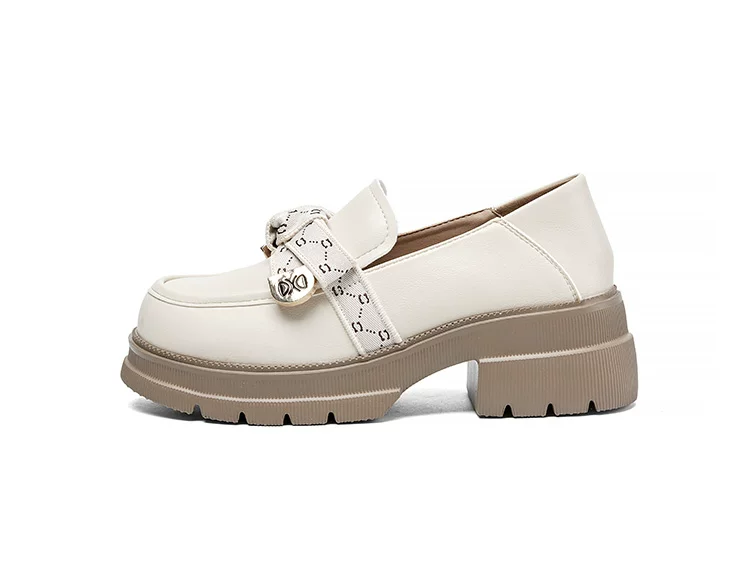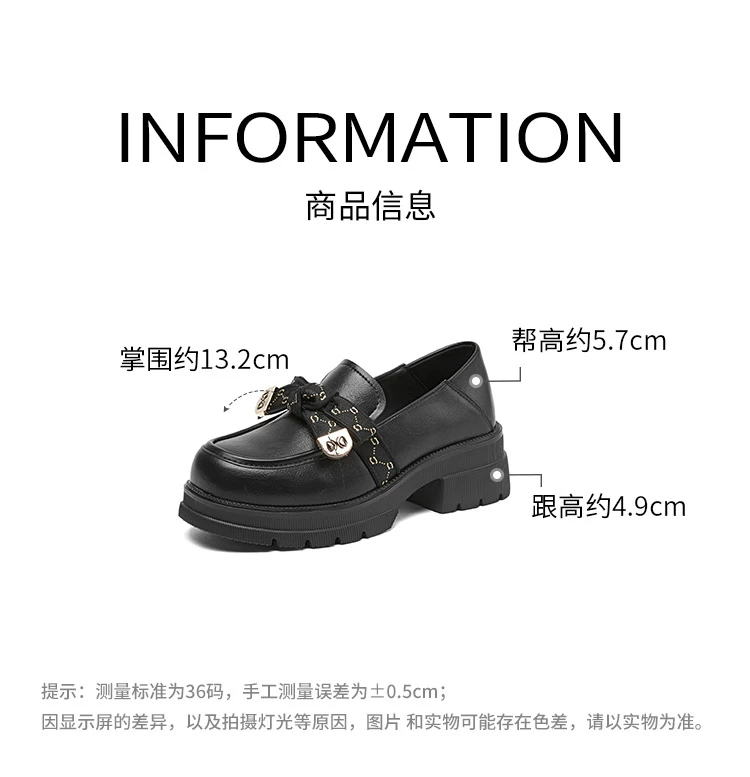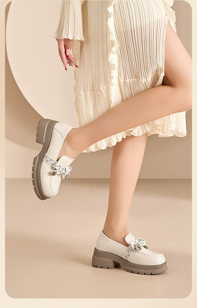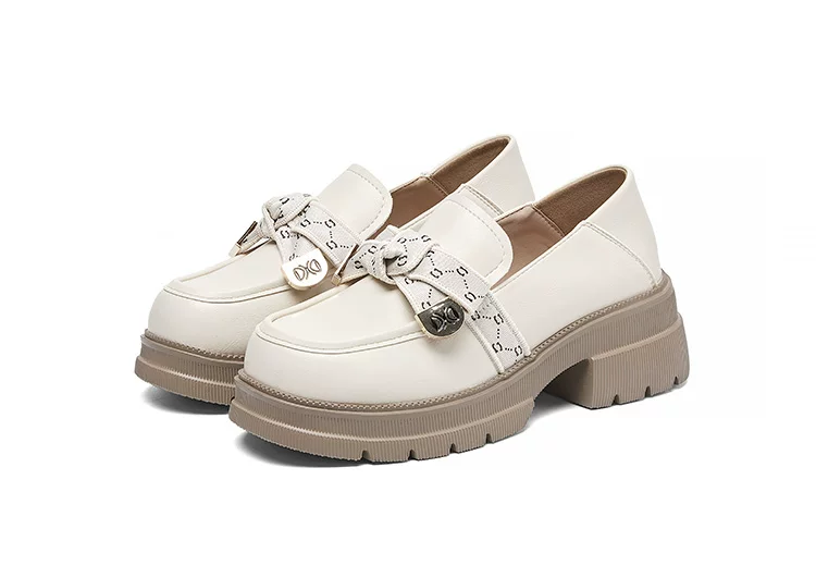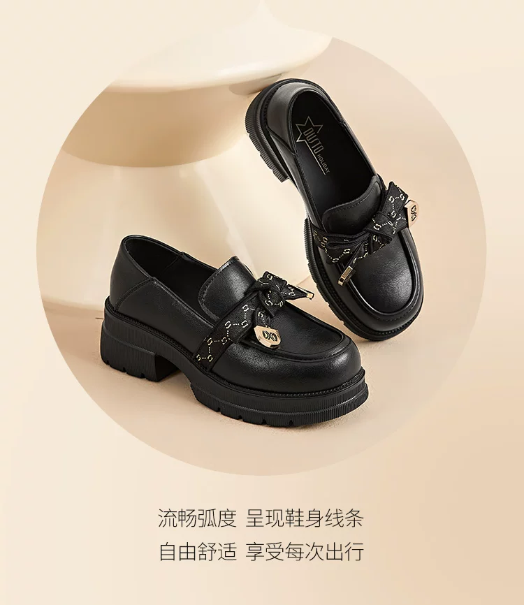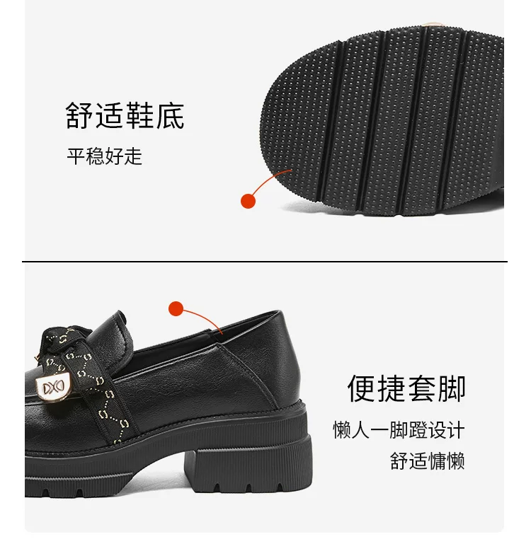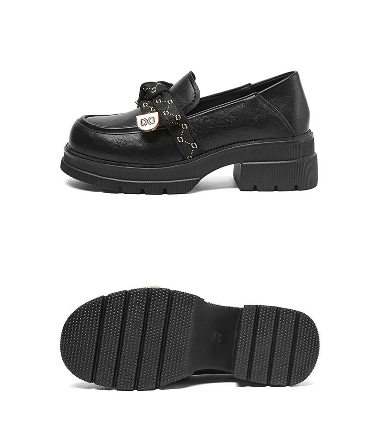 - Giày lười đế dày Dadong dành cho nữ 2025, mẫu mới thu đông, kiểu buộc nơ, gót dày, phối chân váy, phong cách Anh, giày da nhỏ nhắn