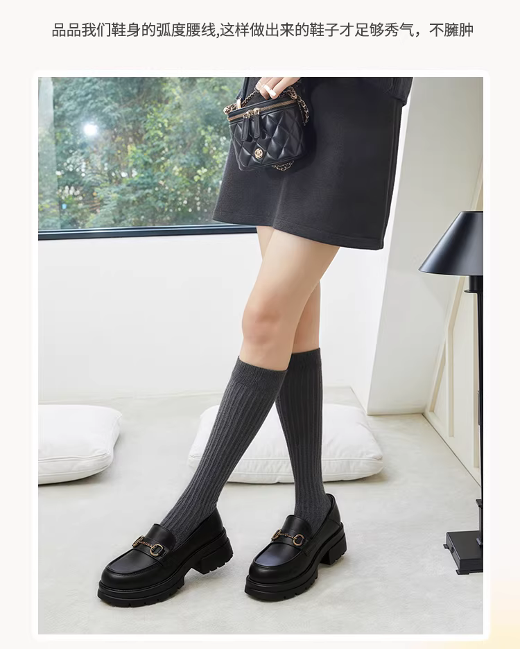 - Giày lười đế dày Dadong dành cho nữ, giày nữ kiểu dáng mới mùa thu đông 2025, giày da nhỏ màu trắng đa năng phong cách Anh Quốc.