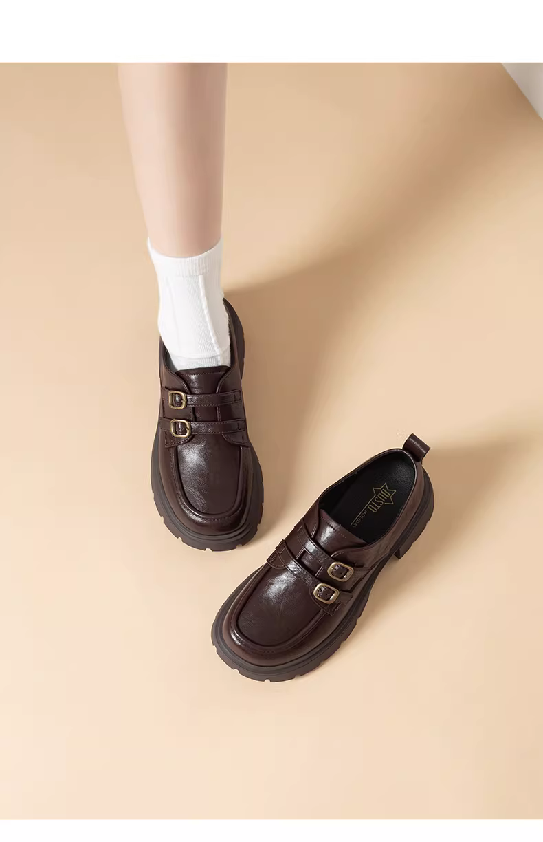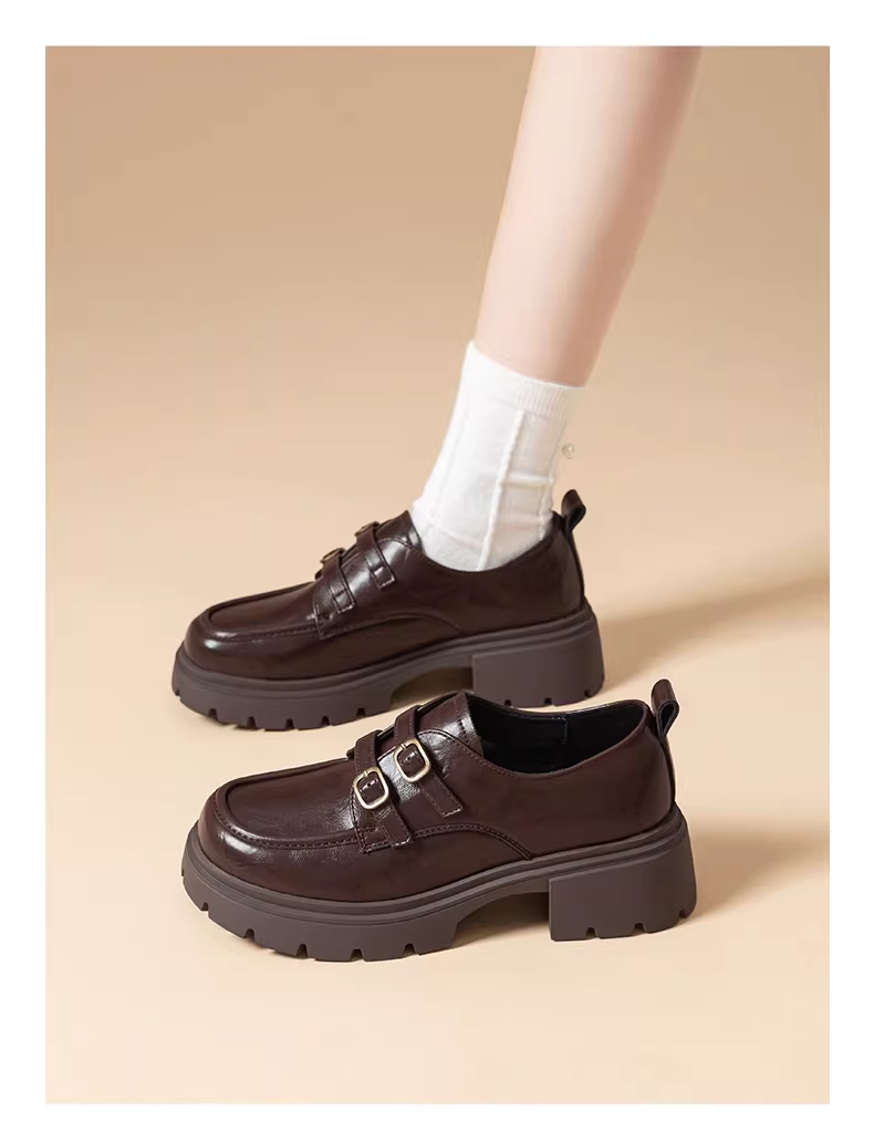 - Giày lười đế dày Dadong dành cho nữ, kiểu mới thu đông 2025, giày đơn màu nâu cổ điển, giày đồng phục, giày nữ, giày da nhỏ kiểu Nhật.