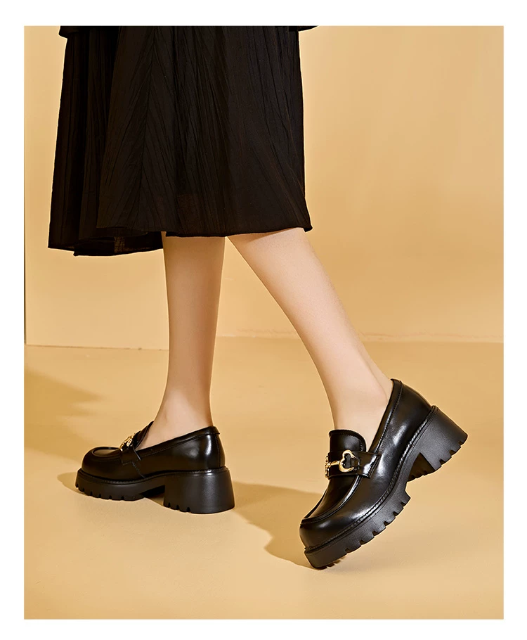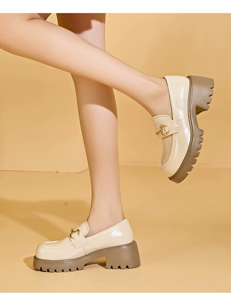 - Giày lười đế dày màu trắng Dadong dành cho nữ, giày nữ kiểu mới mùa thu 2025, giày cao gót đơn kiểu Pháp, giày da nhỏ tăng chiều cao mũi rộng.