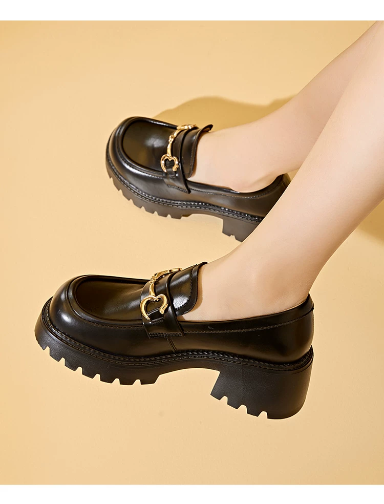 Giày lười đế dày màu trắng Dadong dành cho nữ, giày nữ kiểu mới mùa thu 2025, giày cao gót đơn kiểu Pháp, giày da nhỏ tăng chiều cao mũi rộng.