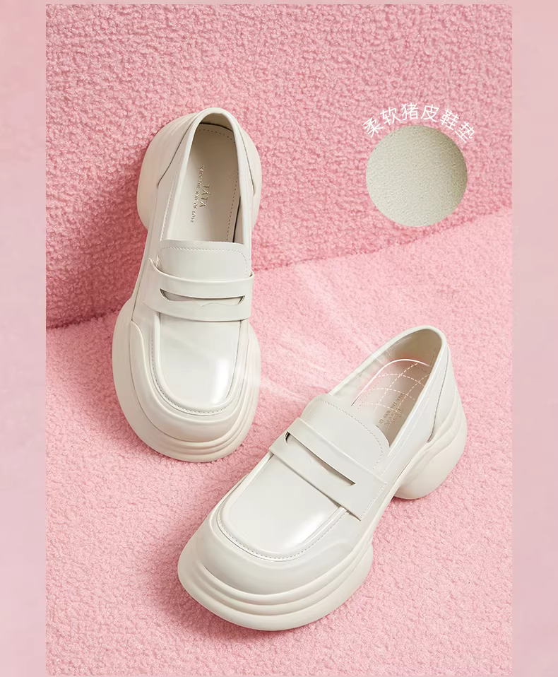 - Giày lười đế dày TATA dành cho nữ, giày da nhỏ gọn, mẫu mới mùa đông 2024 CCJ01CA5
