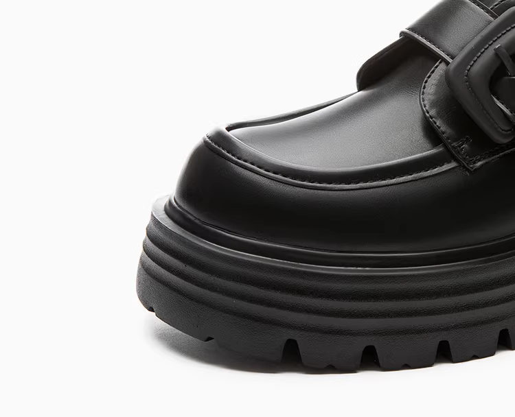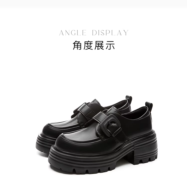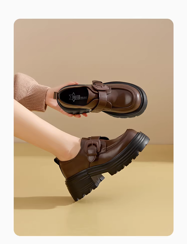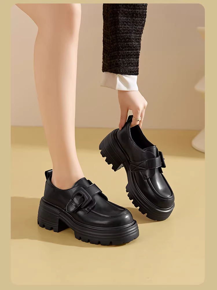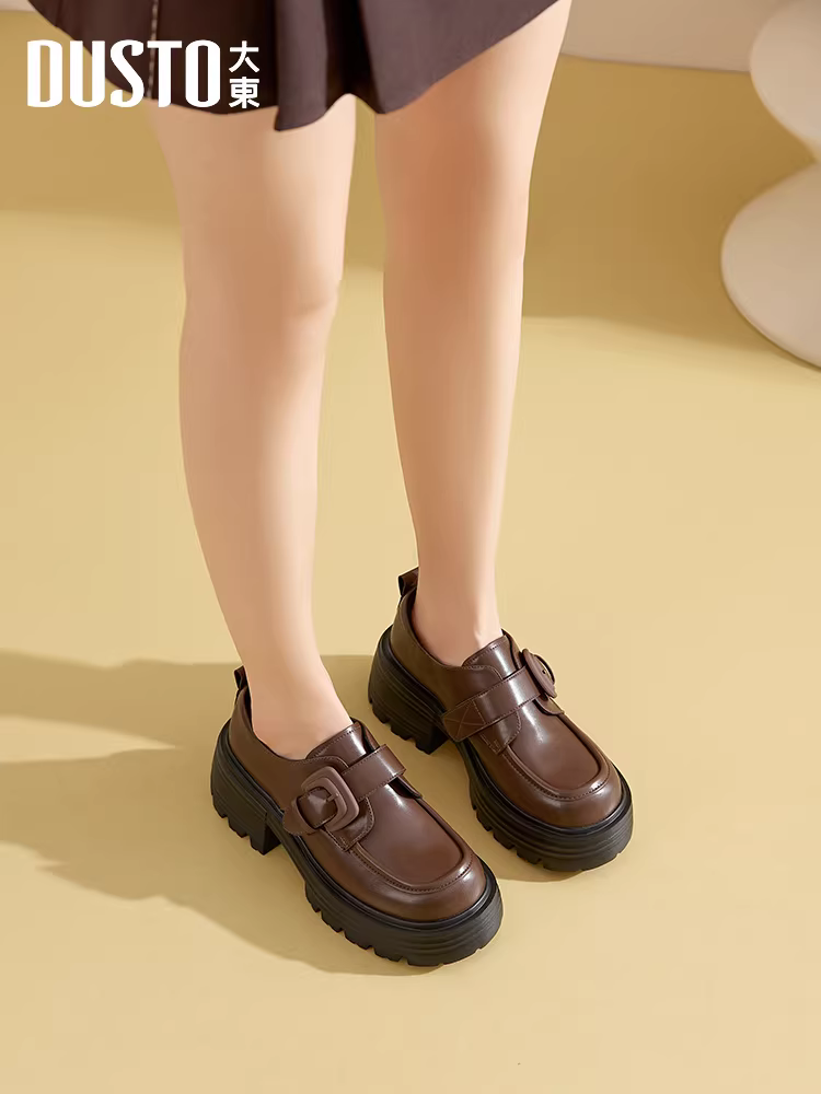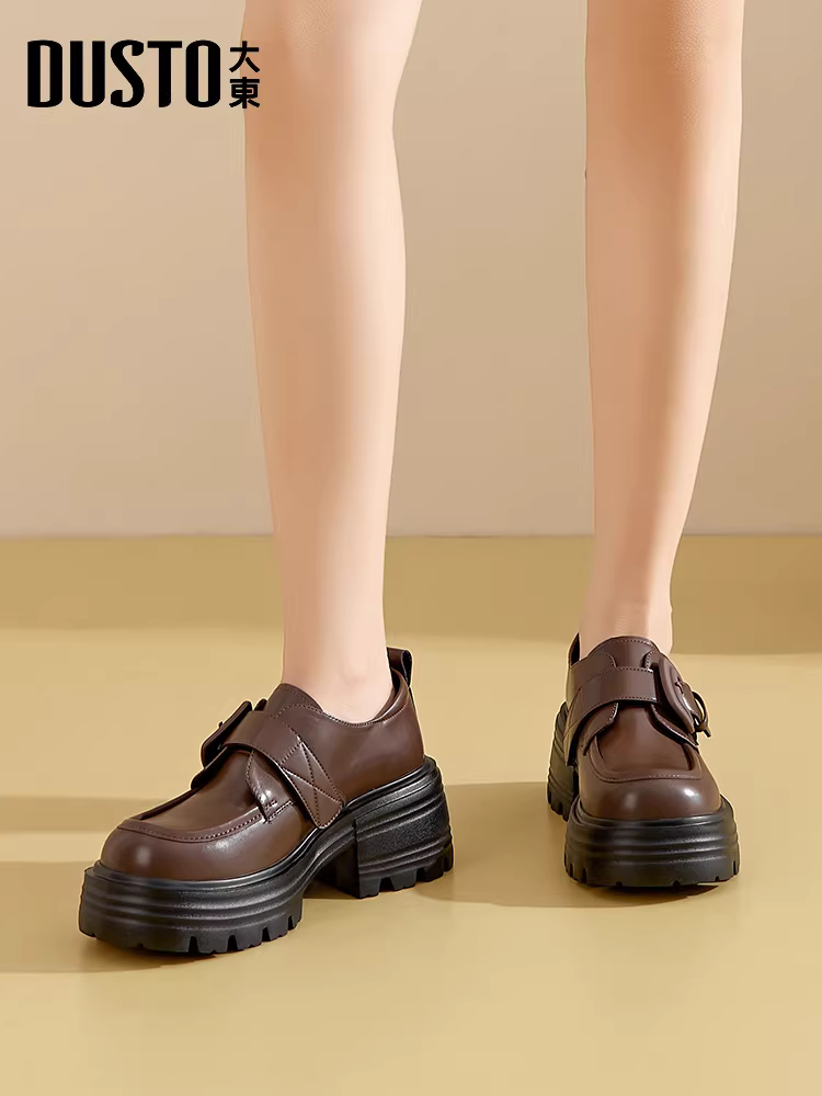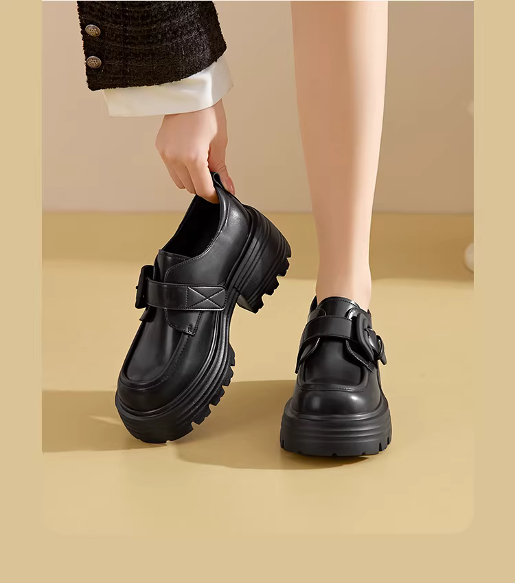- Giày lười đen Dadong dành cho nữ 2025, mẫu mới thu đông, kiểu dáng sâu, gót dày, đế dày, tăng chiều cao, phong cách Anh, giày da nhỏ gọn.