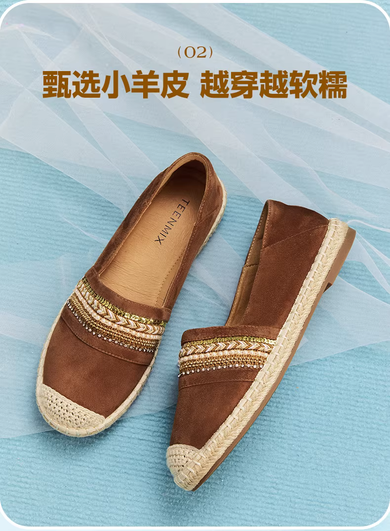 - Giày lười đi biển bằng rơm Tianmeiyi dành cho nữ, giày đế bằng nông, mẫu mới mùa xuân 2026 KP015AA6