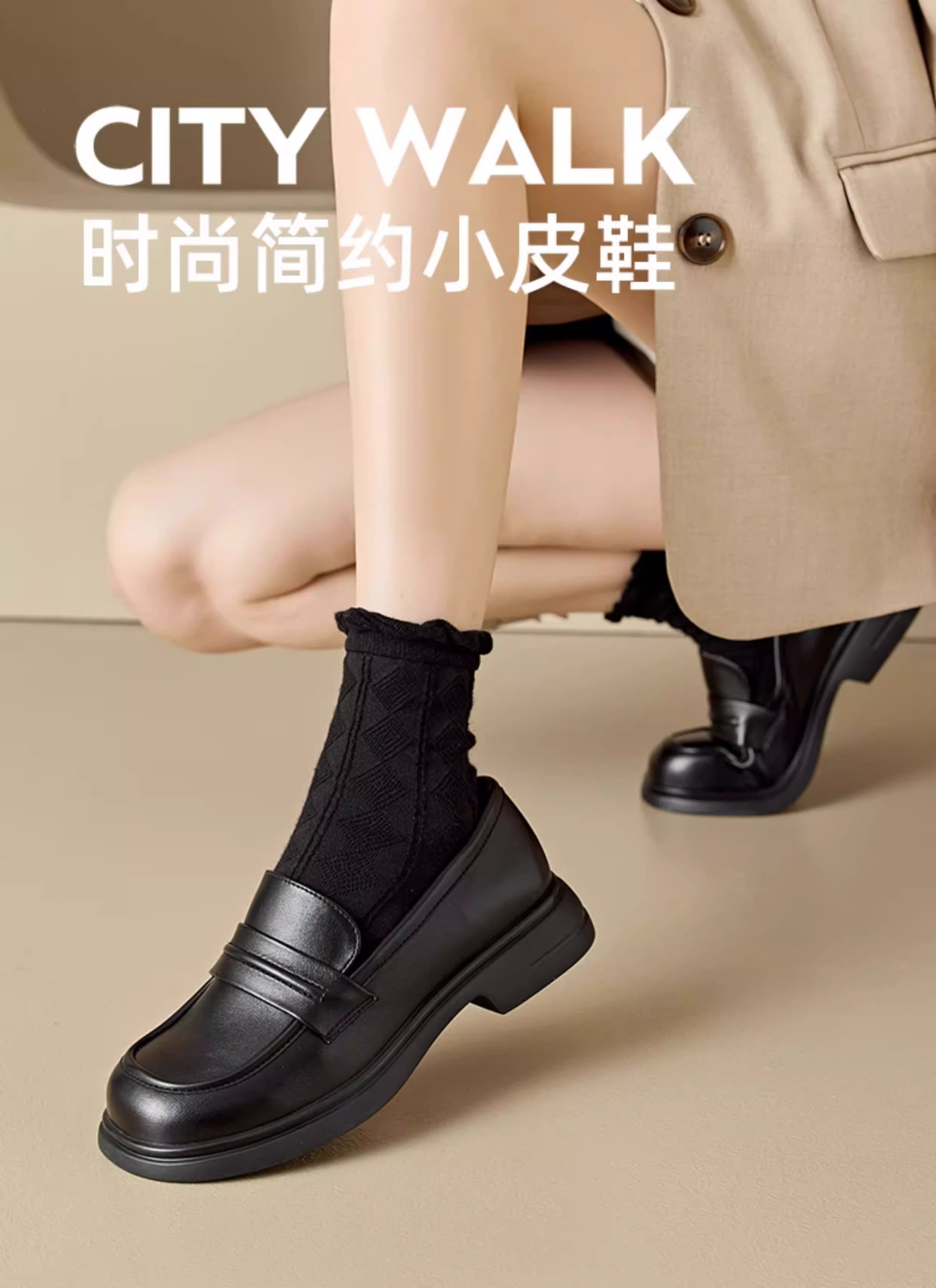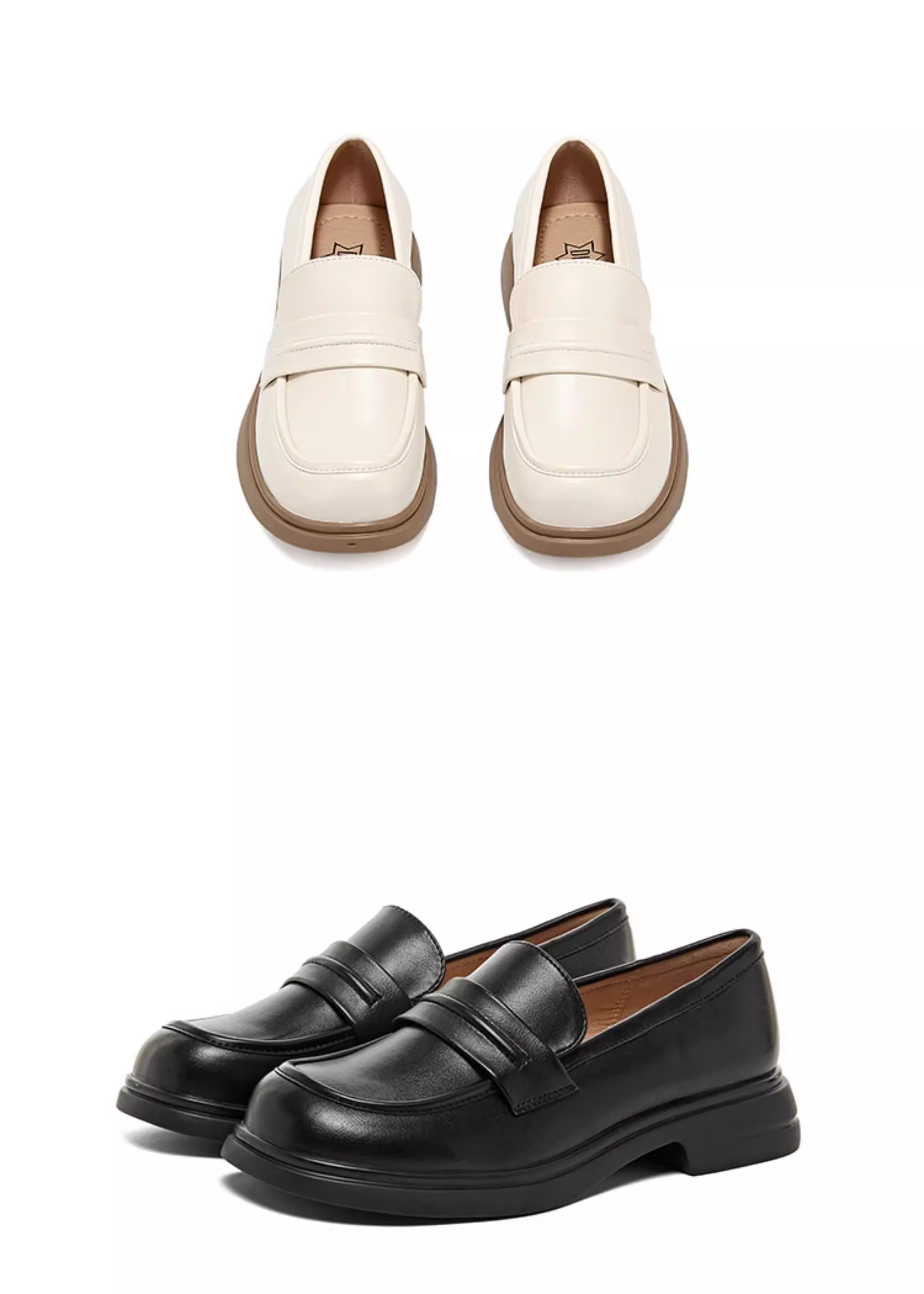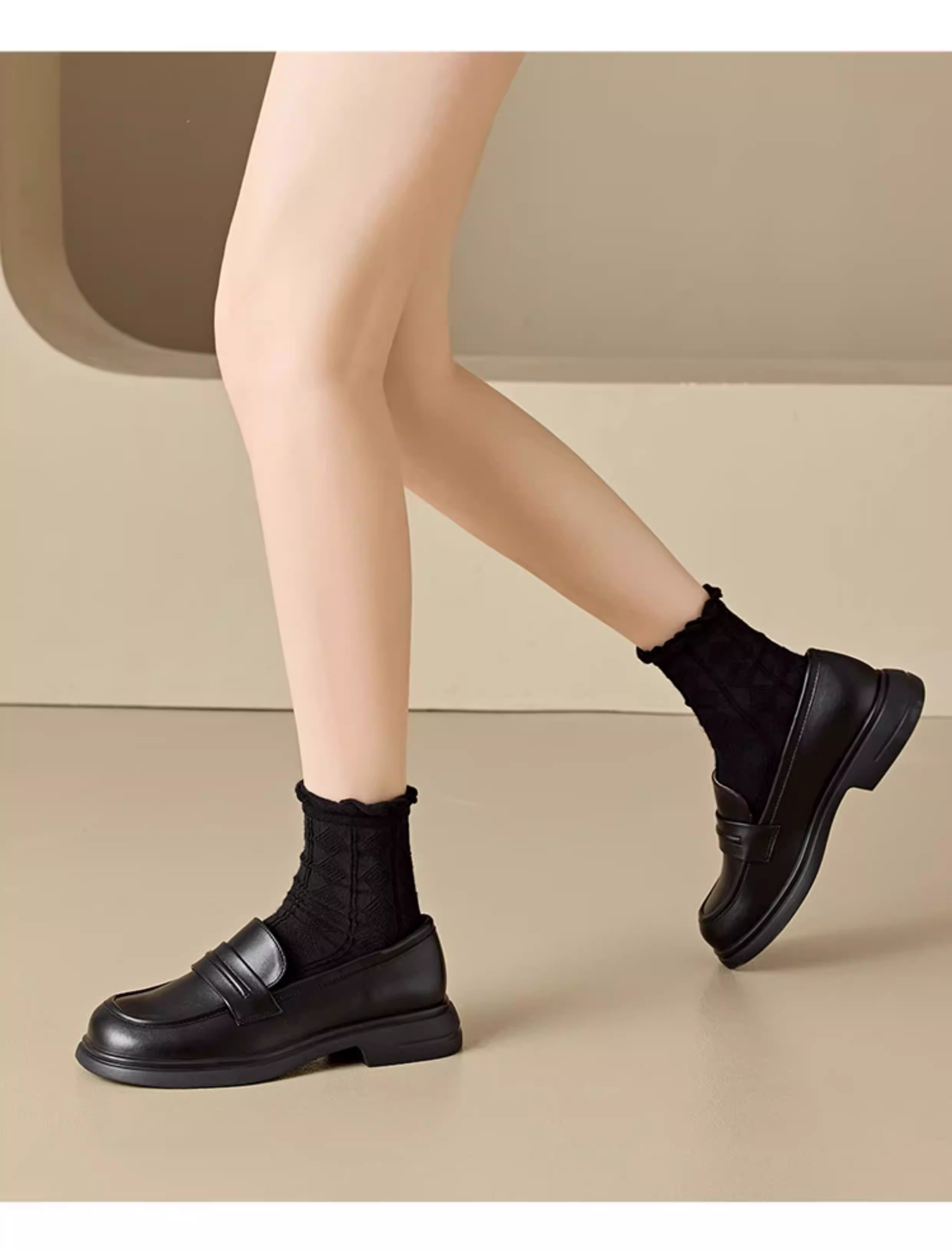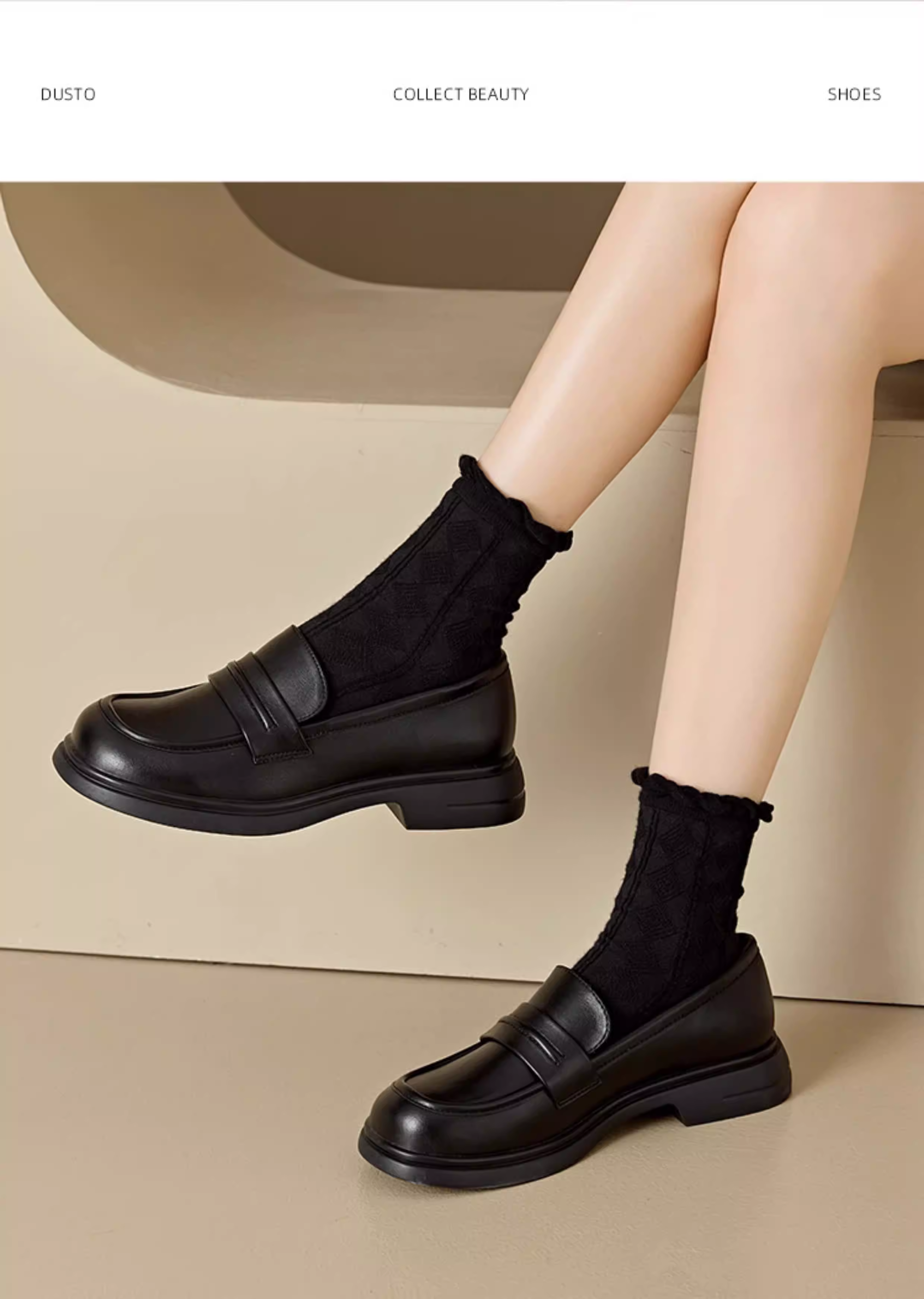 - Giày lười kiểu Anh Dadong dành cho nữ, mẫu mới mùa thu 2025, giày da đế dày màu đen, giày lười đa năng đi làm.