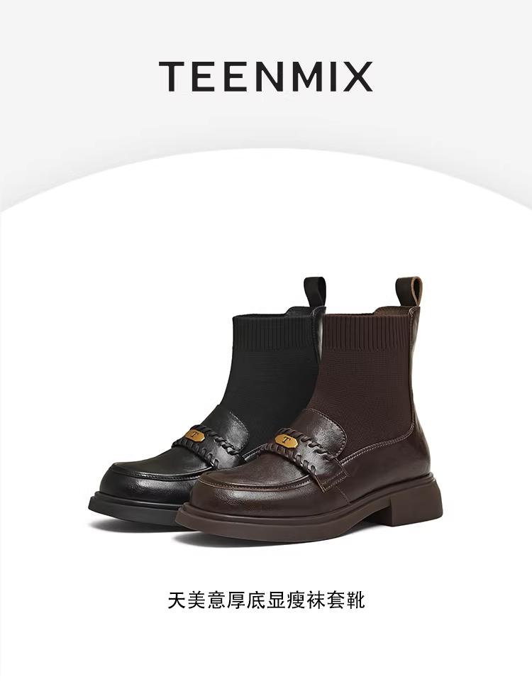 - Giày lười kiểu Anh đế dày cổ điển Tianmeiyi, bốt thun, giày nữ, bốt ôm dáng, bốt ngắn thông thường, phong cách mới mùa đông 2025