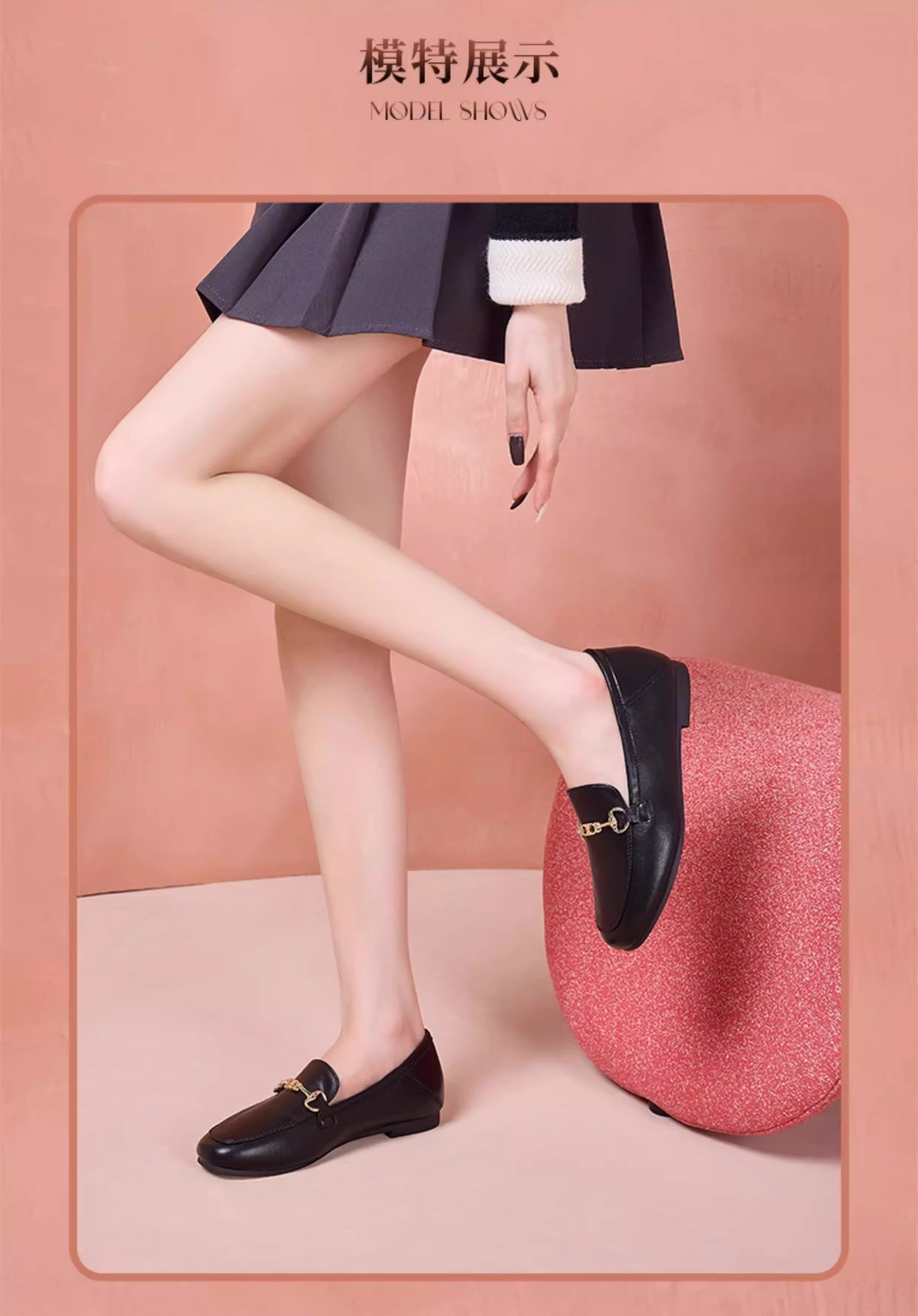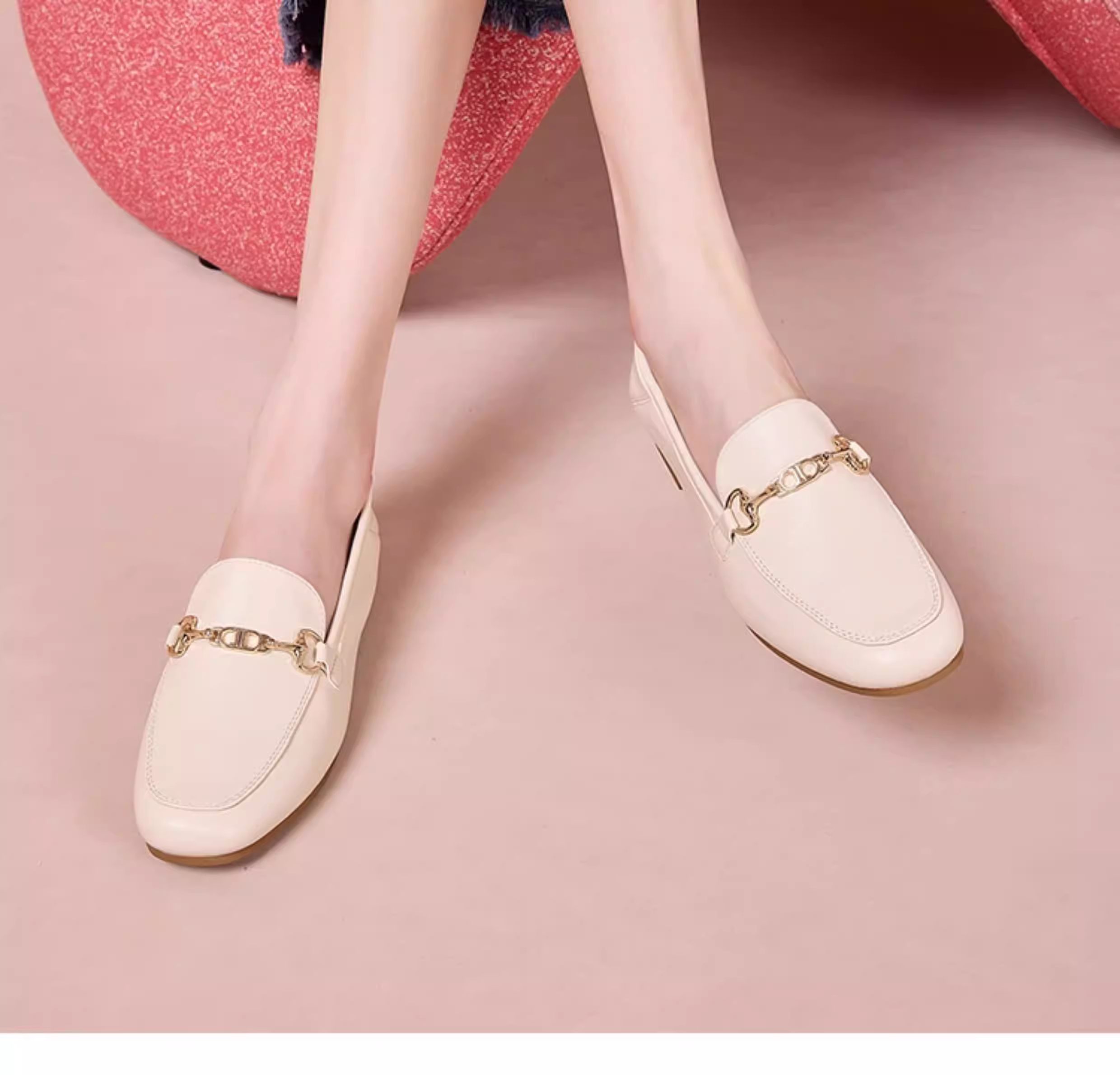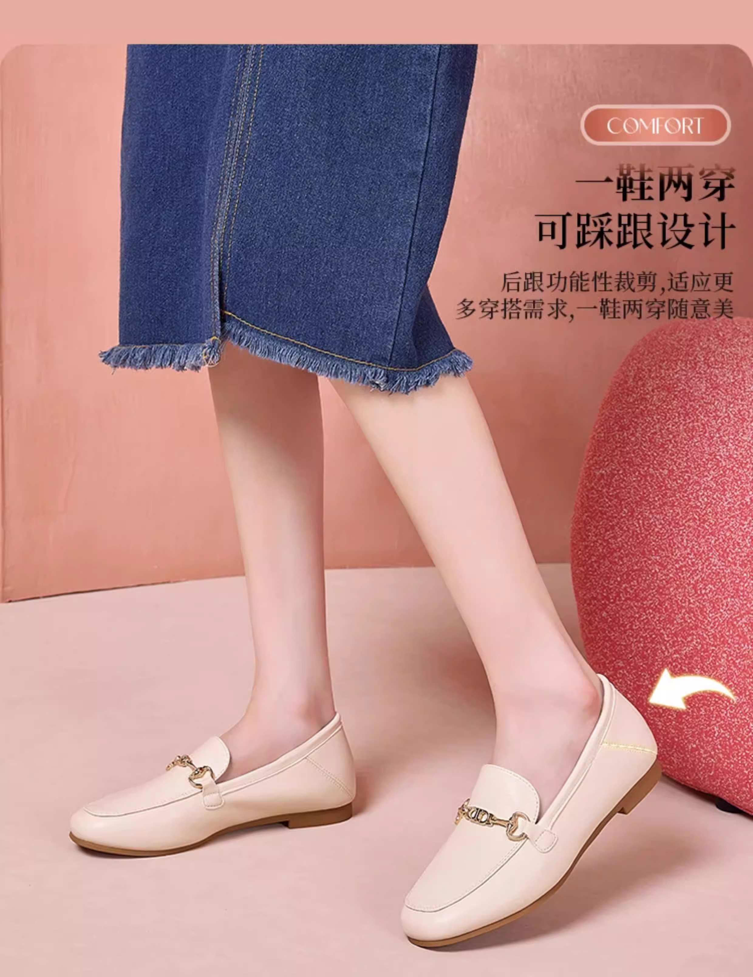 - Giày lười kiểu Pháp Dadong dành cho nữ 2025, mẫu mới mùa thu, kiểu xỏ ngón, đế bằng, đế mềm, màu trắng, đi làm, giày da nhỏ gọn