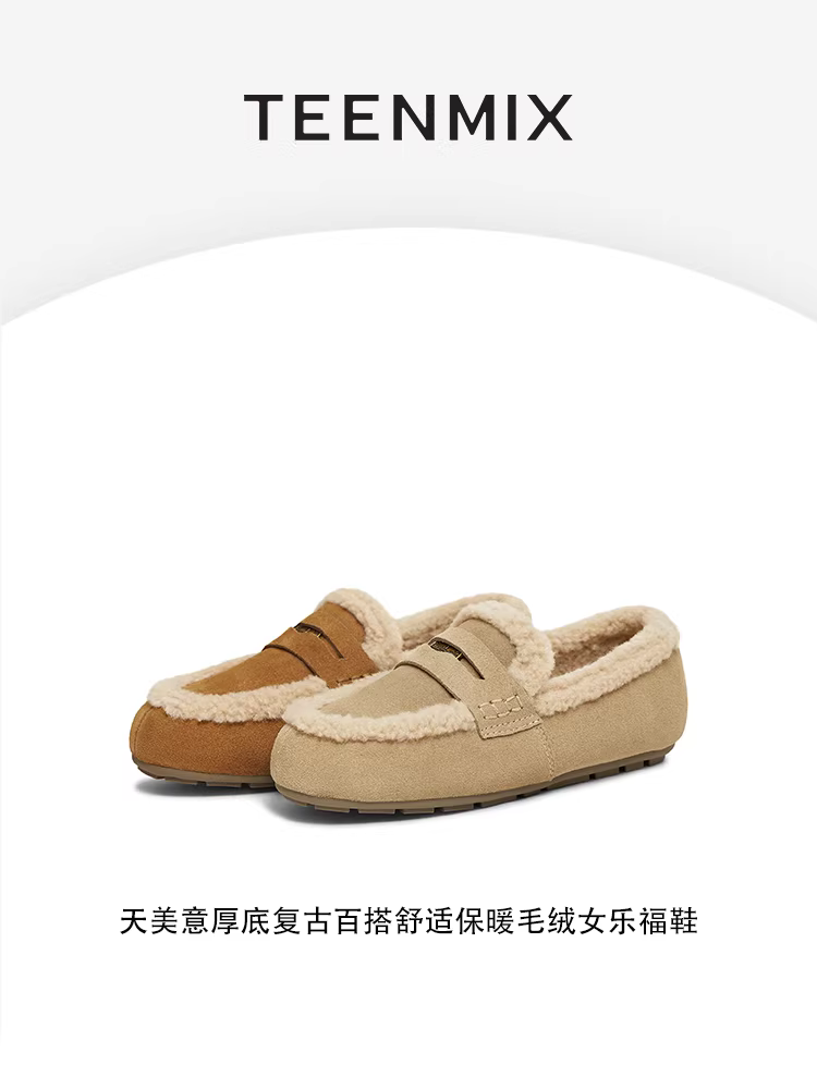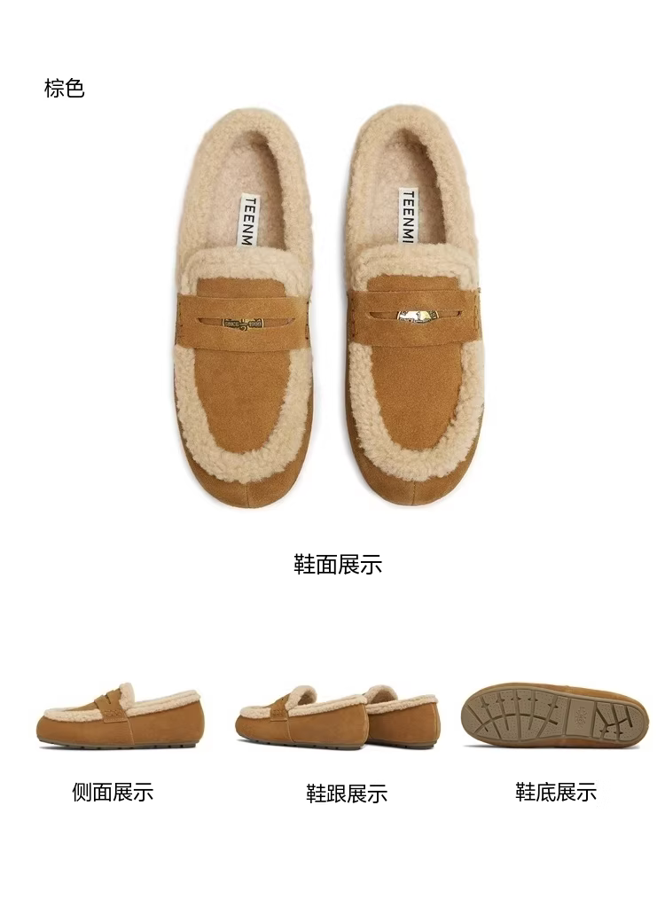- Giày lười lông thú Tianmeiyi, giày lông, giày cotton nữ, giày bệt không dây, mẫu mới mùa đông 2025 KE083DM5