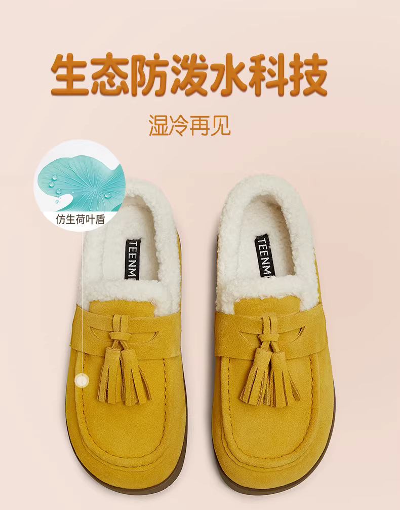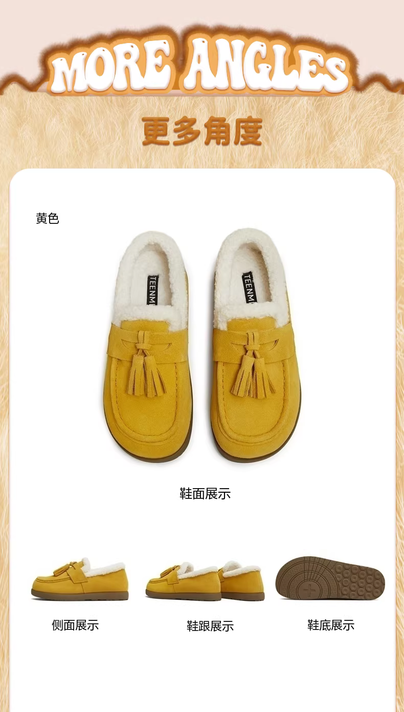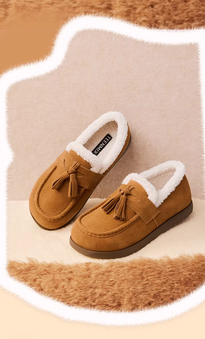 - Giày lười lót lông cừu đế dày Tianmeiyi, giày lông, giày cotton, ủng tuyết nữ, bốt ngắn thông thường, phong cách mới mùa đông 2025