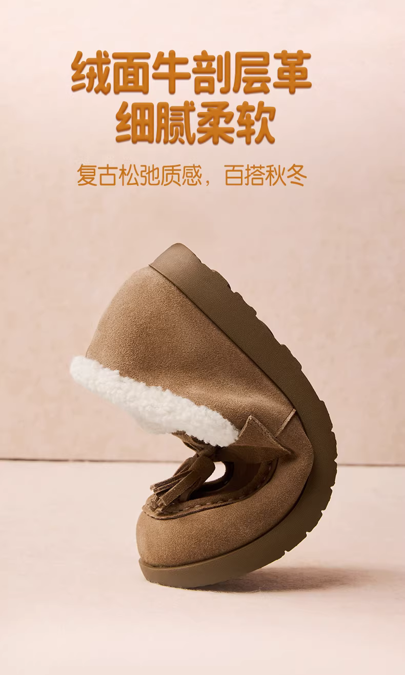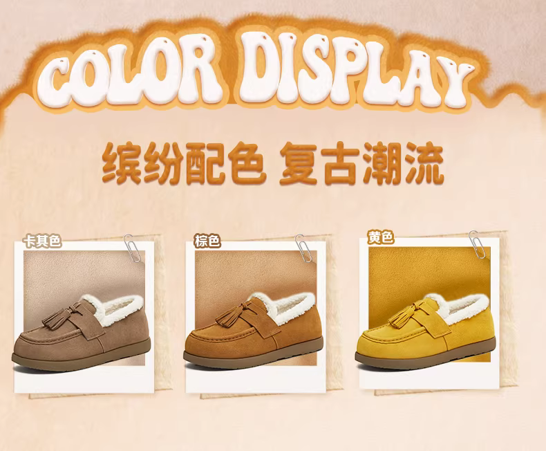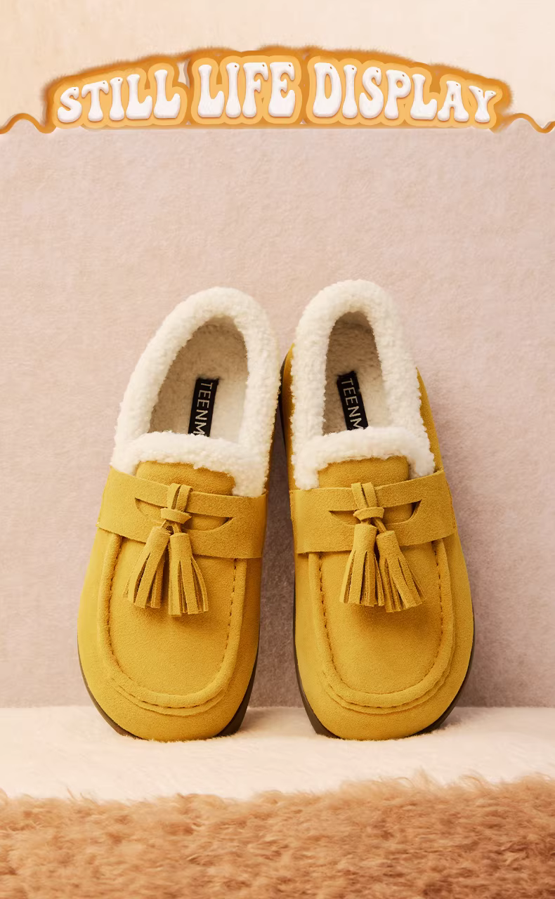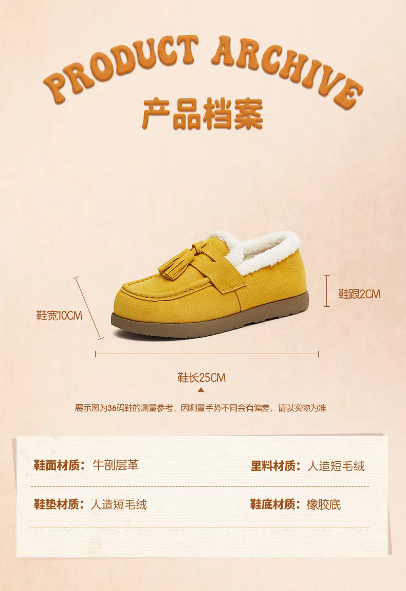 - Giày lười lót lông cừu đế dày Tianmeiyi, giày lông, giày cotton, ủng tuyết nữ, bốt ngắn thông thường, phong cách mới mùa đông 2025