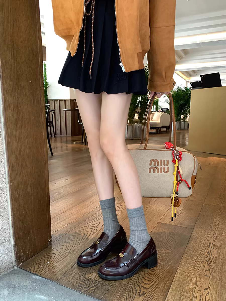 - Giày lười nữ da cừu kiểu Anh, mũi tròn, đế xuồng, chất liệu da thật, kiểu retro, phong cách JK.