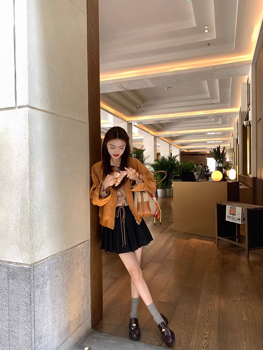 Giày lười nữ da cừu kiểu Anh, mũi tròn, đế xuồng, chất liệu da thật, kiểu retro, phong cách JK.