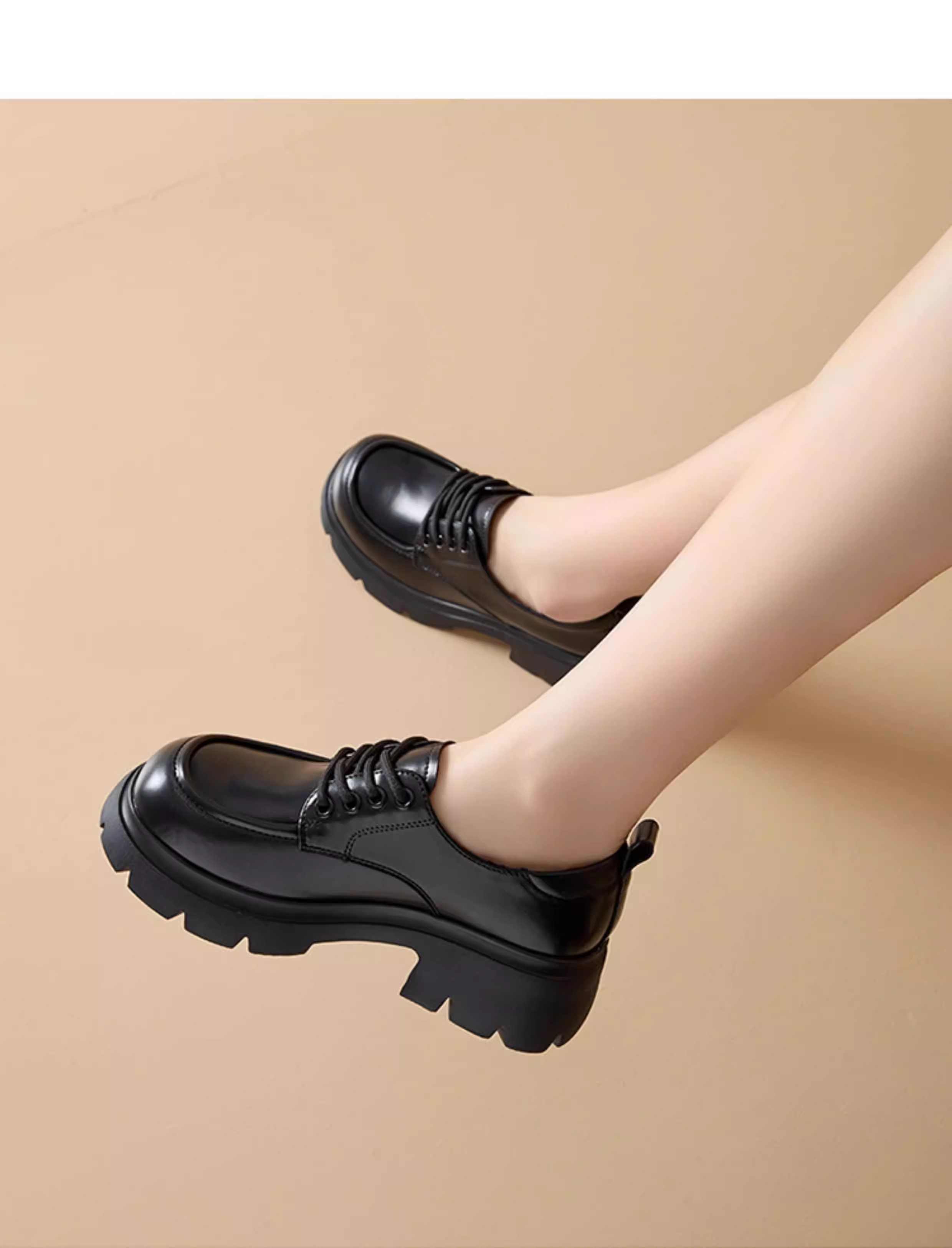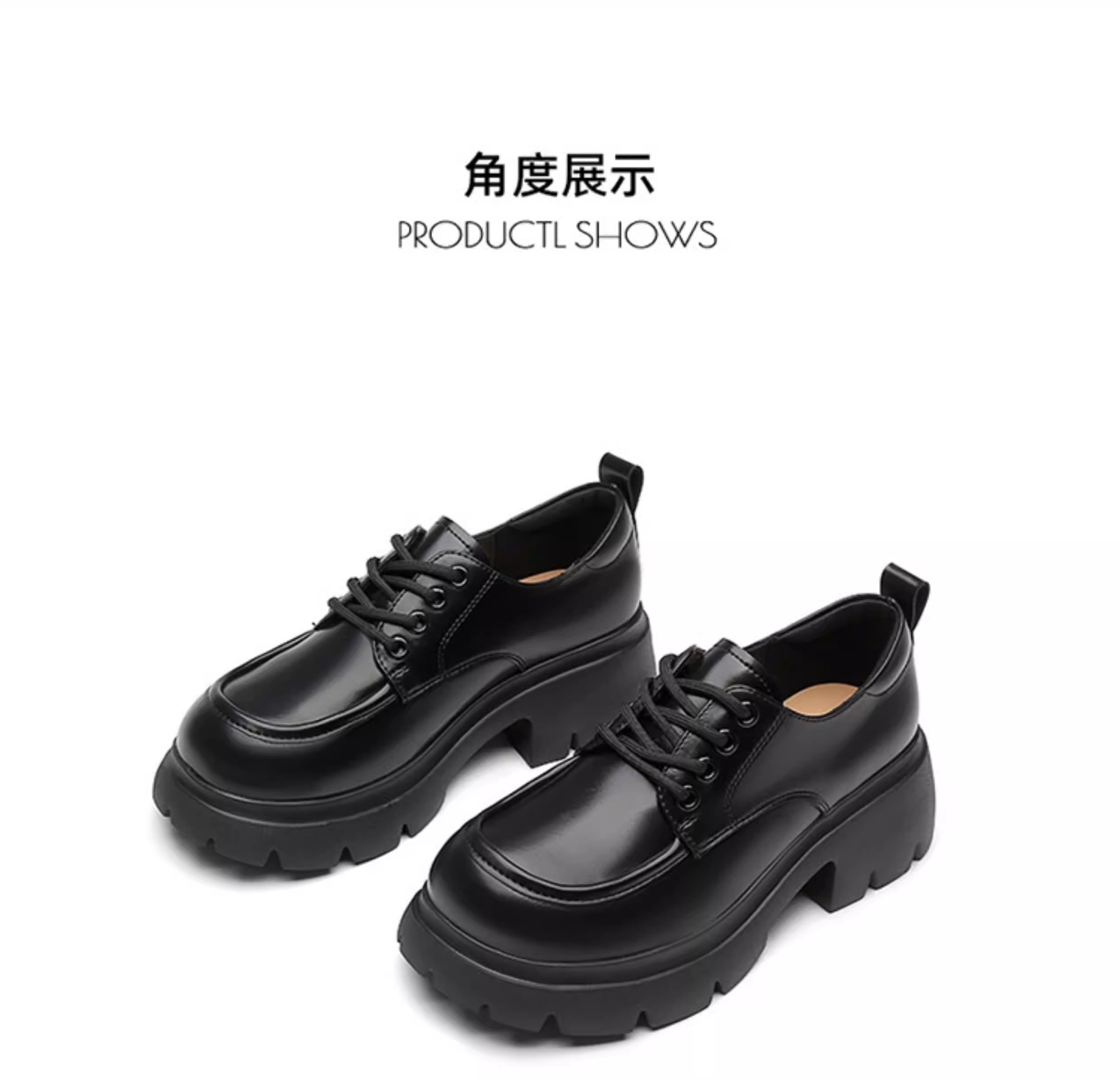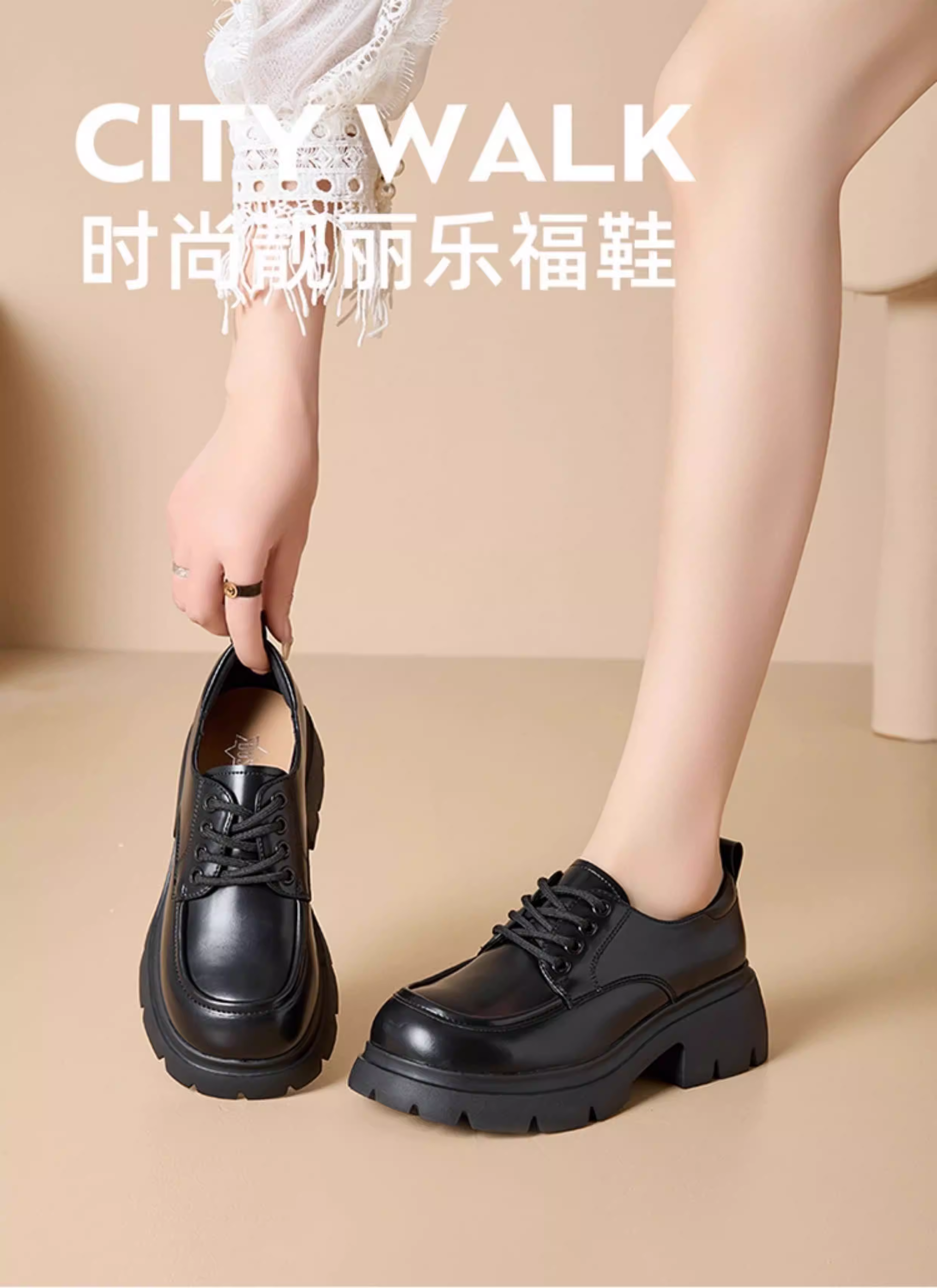 - Giày lười nữ đế dày 2025 kiểu mới màu đen mùa thu đông, gót dày, giày đơn, phong cách Anh, giày da tăng chiều cao