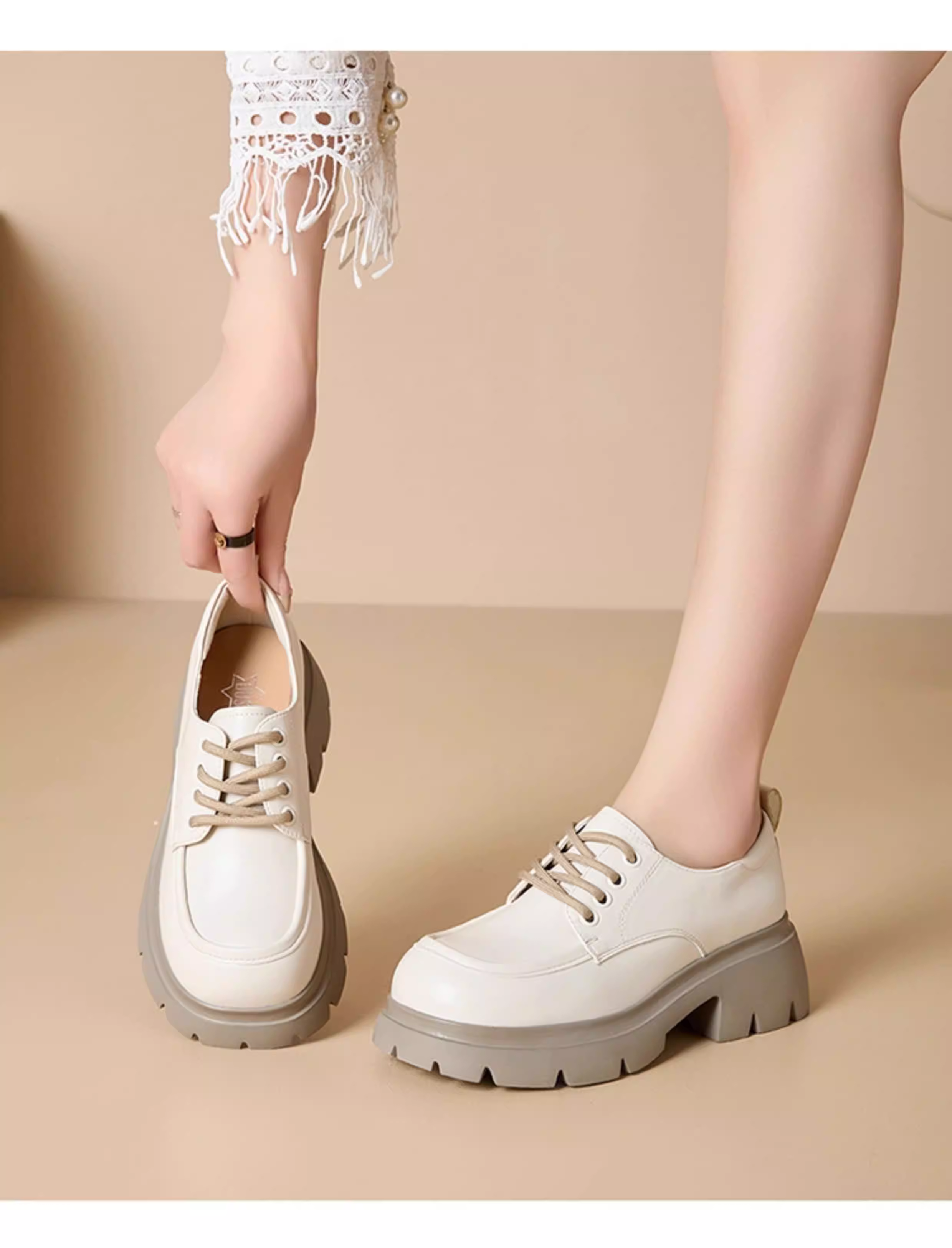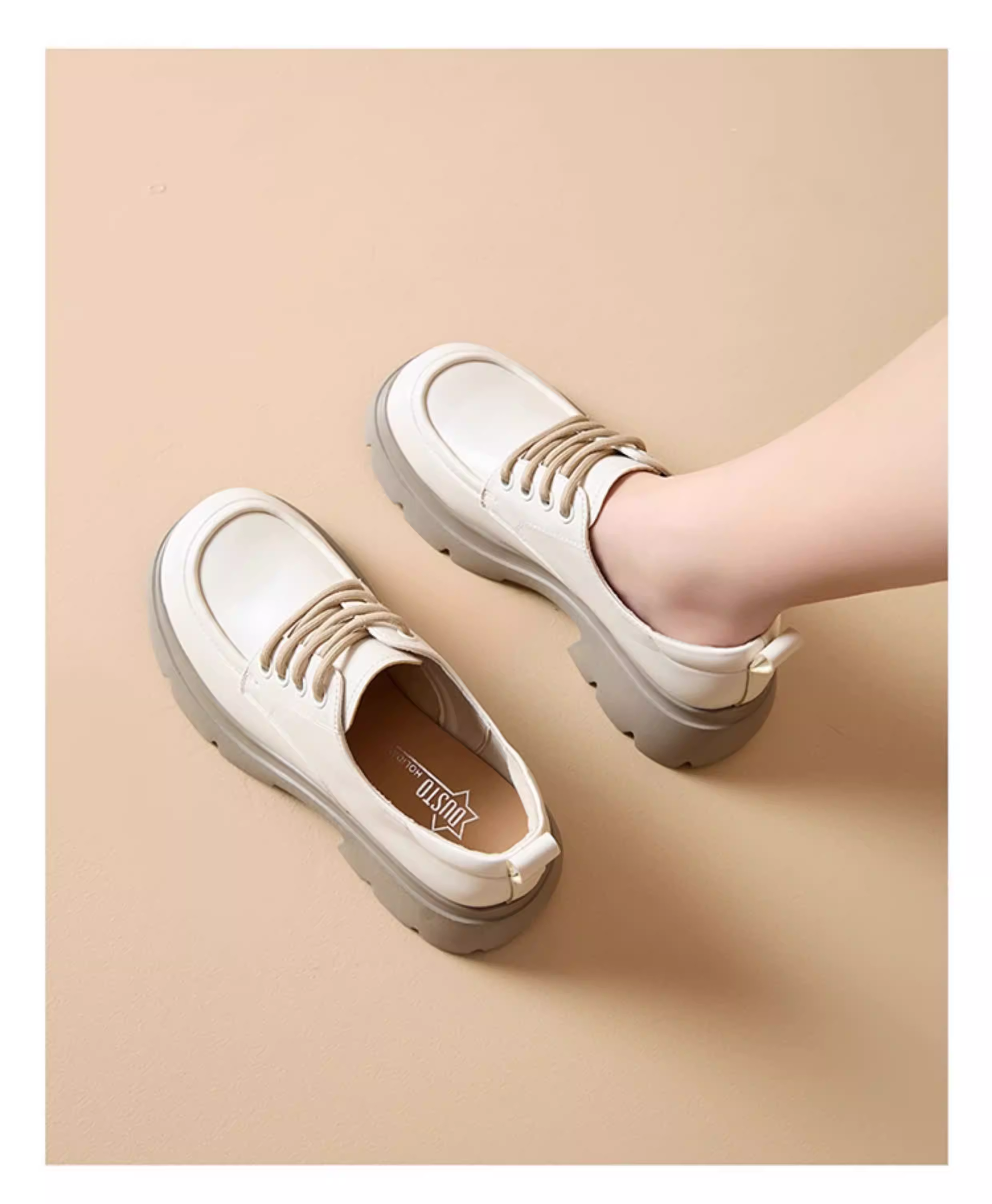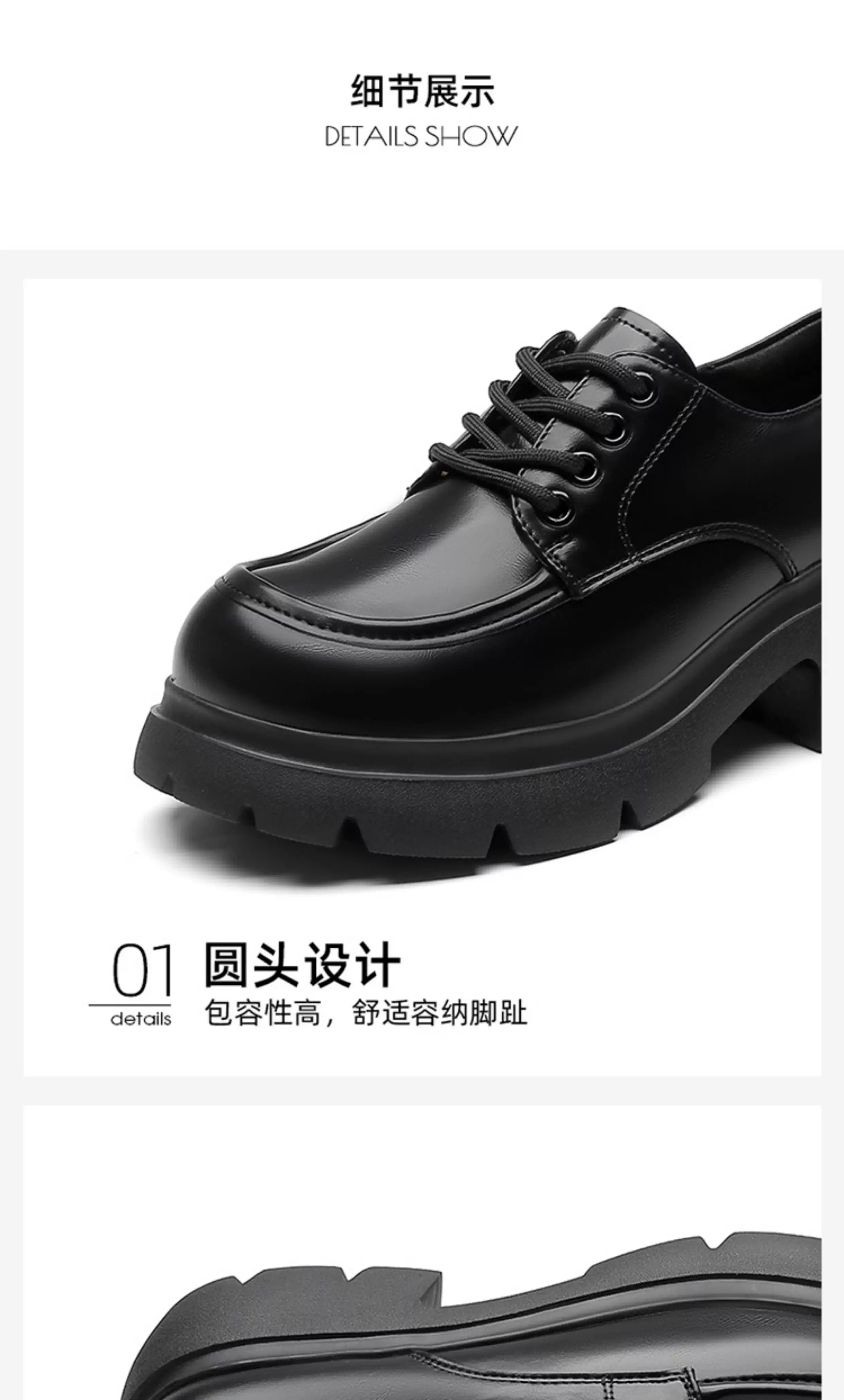 - Giày lười nữ đế dày 2025 kiểu mới màu đen mùa thu đông, gót dày, giày đơn, phong cách Anh, giày da tăng chiều cao