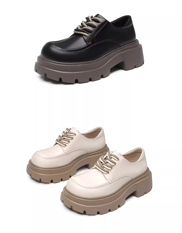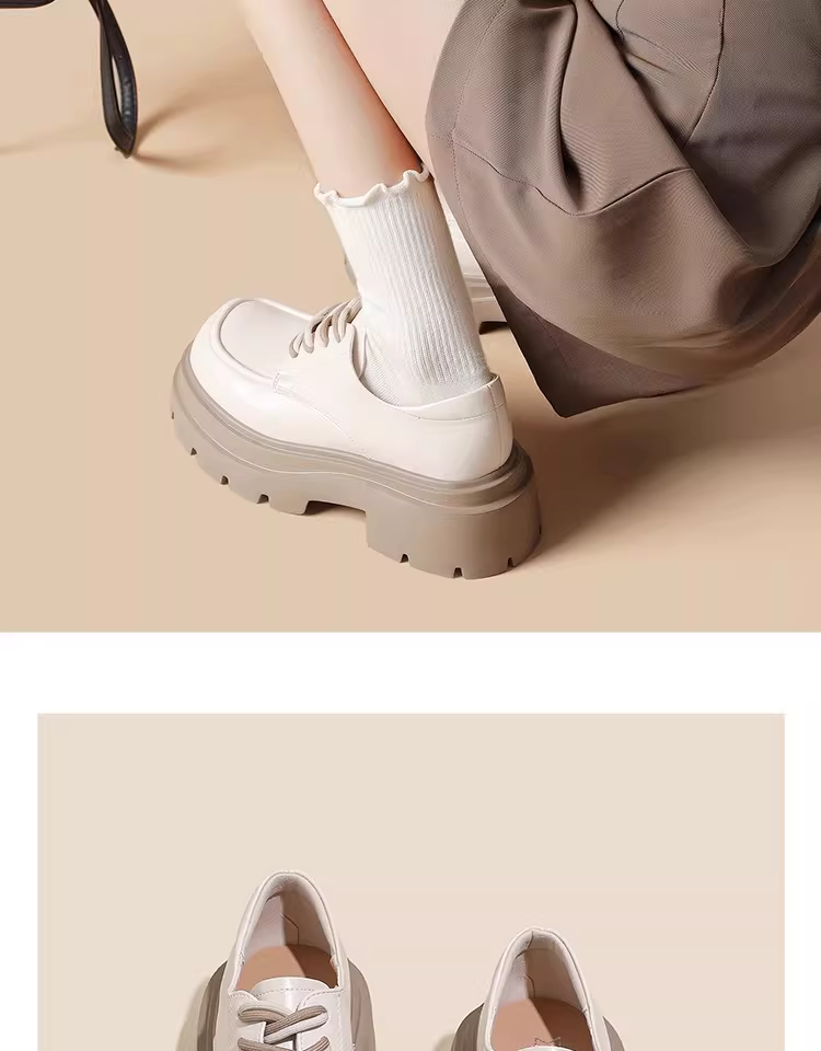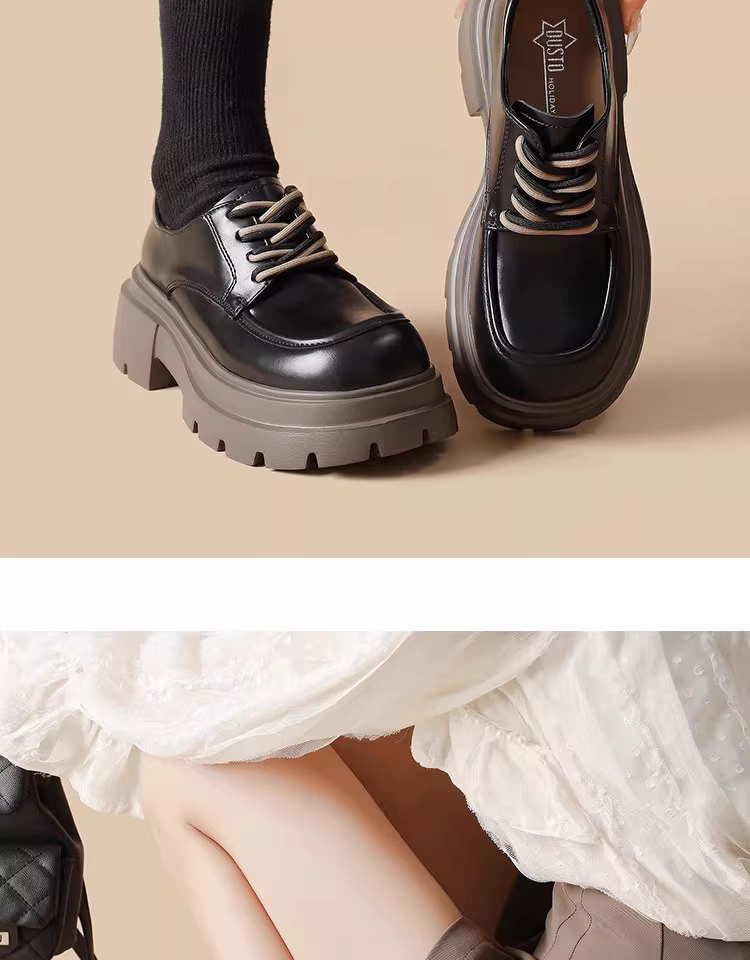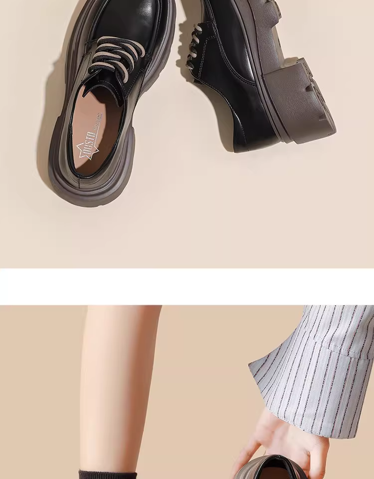 - Giày lười nữ đế dày mùa thu đông 2025 kiểu mới gót dày mũi rộng thoải mái da mềm tăng chiều cao phong cách Anh giày da nhỏ nhắn