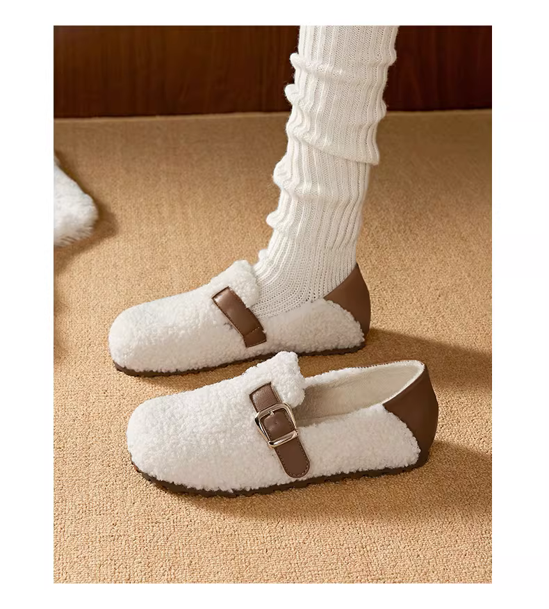 - Giày lười nữ lót lông dùng cho ngoài trời, giày bông ấm mùa thu đông 2025 mới có lớp lót lông mềm, kiểu giày lười Birkenstock.