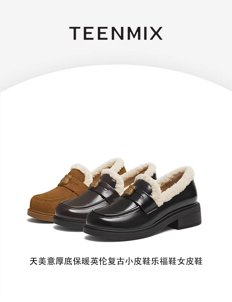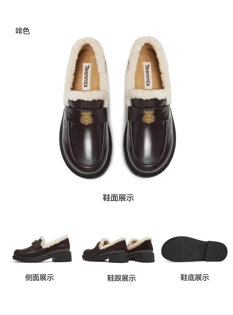 Giày lười nữ Tianmeiyi kiểu Anh cổ điển đế dày, chất liệu da, lót lông mềm, mẫu mới mùa đông 2025, mã CNG35DM5