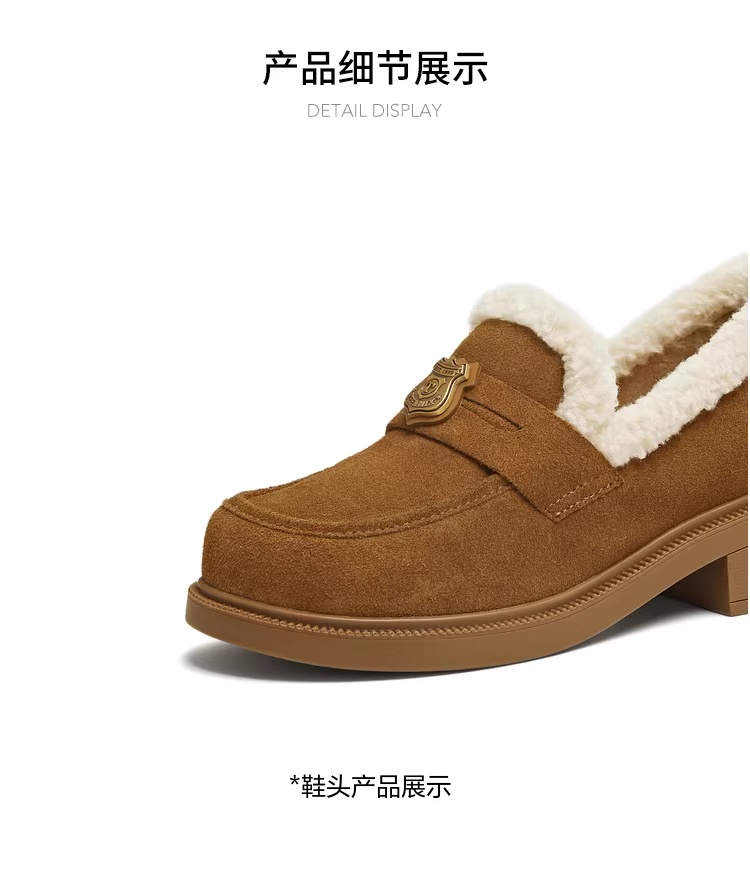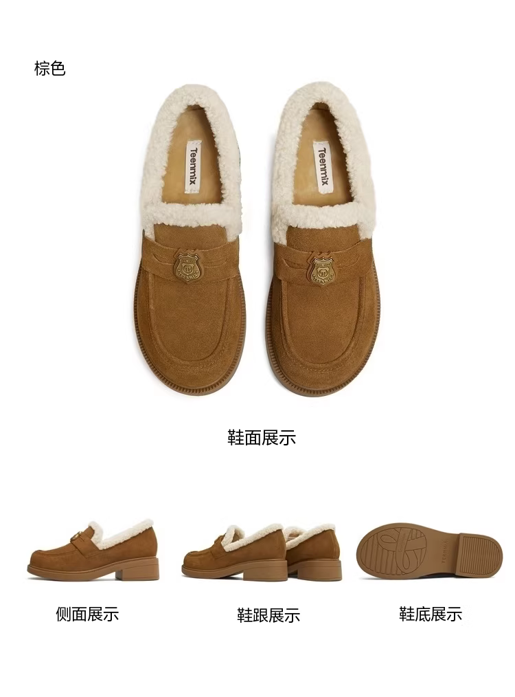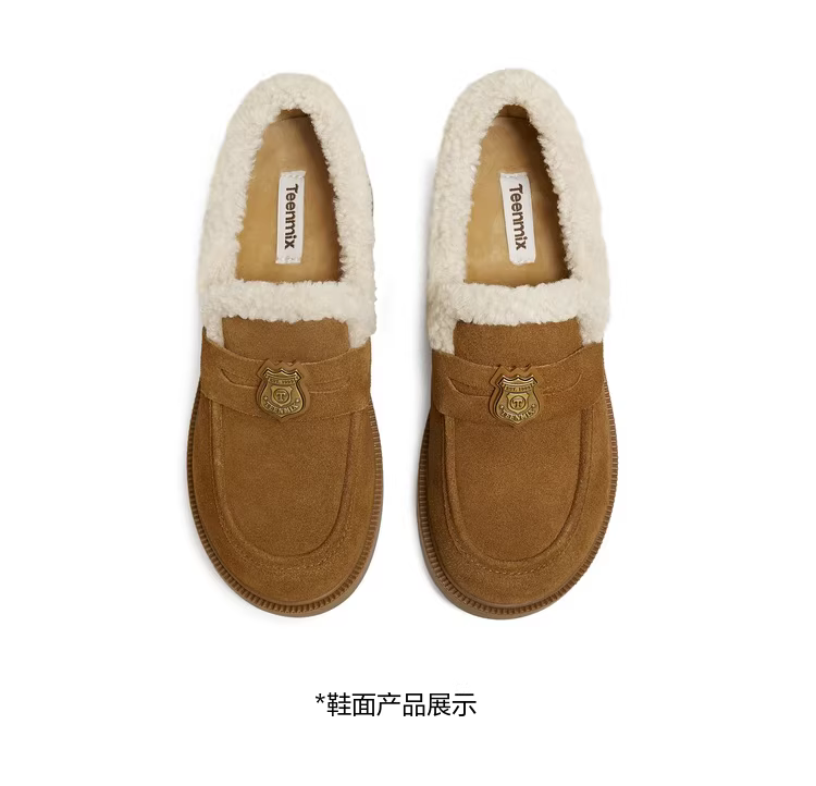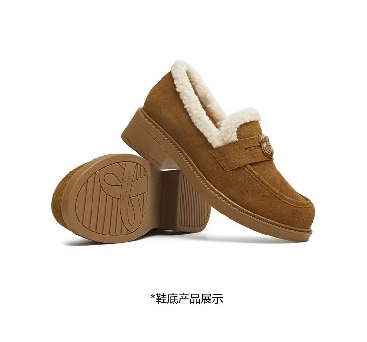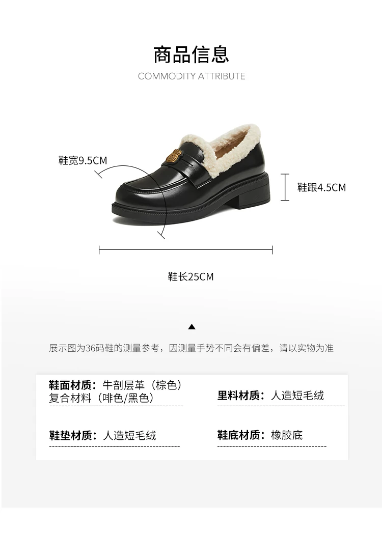 - Giày lười nữ Tianmeiyi kiểu Anh cổ điển đế dày, chất liệu da, lót lông mềm, mẫu mới mùa đông 2025, mã CNG35DM5
