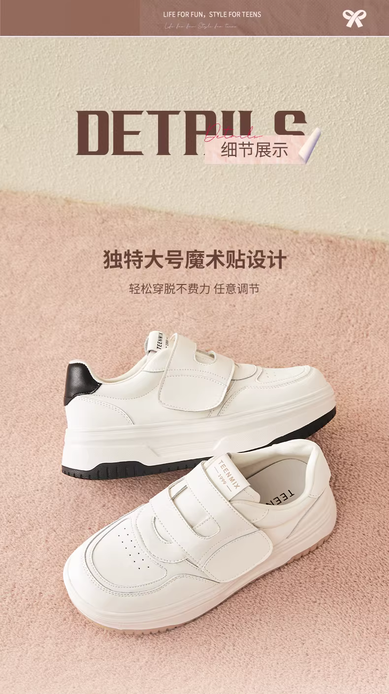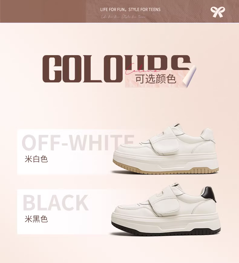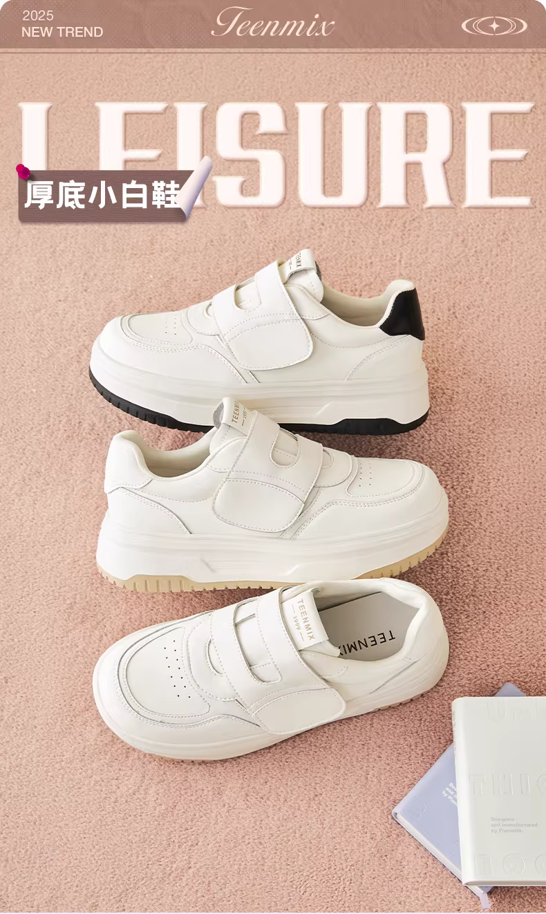 - Giày lười tăng chiều cao đế dày Tianmeiyi Velcro Giày thể thao màu trắng Giày thường ngày cho nữ 2025 Phong cách mới mùa thu