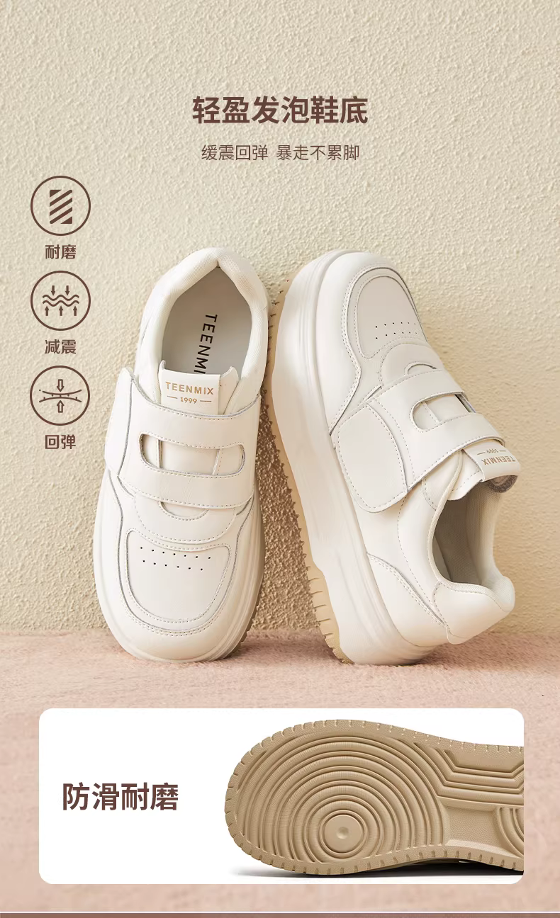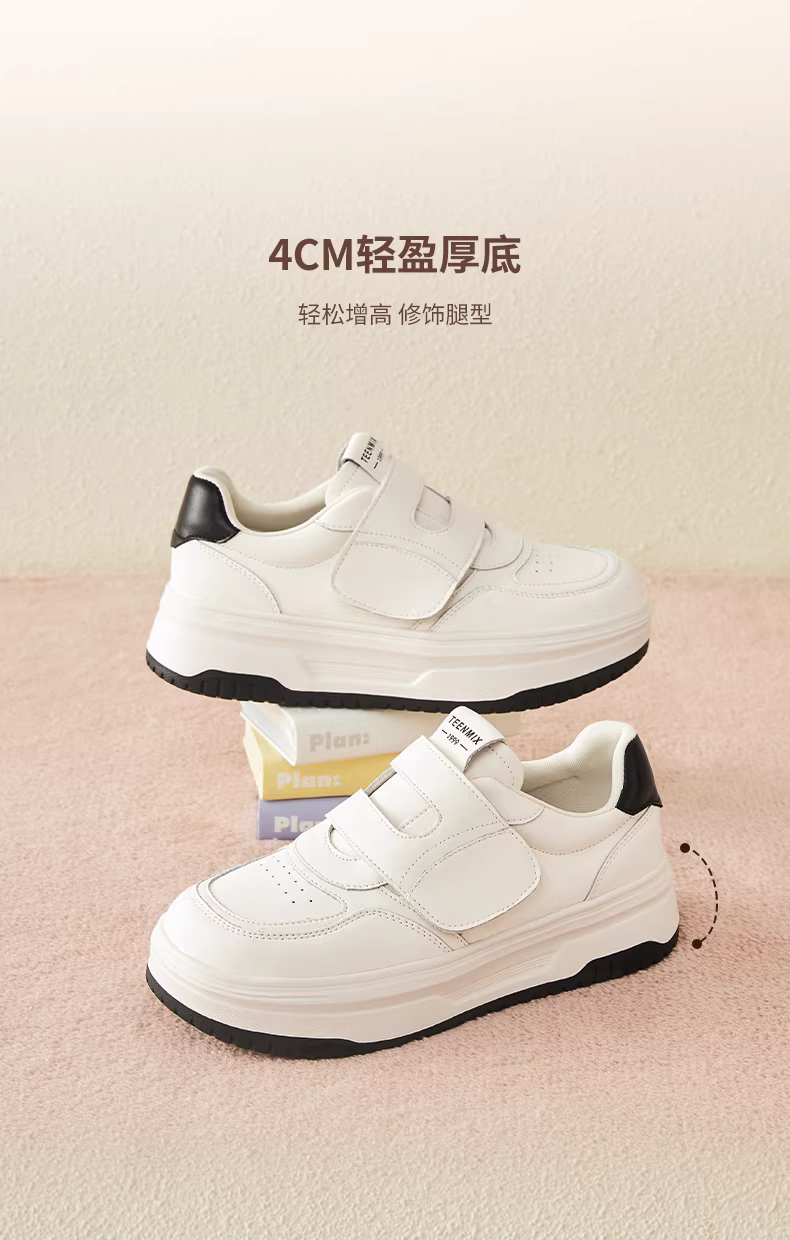 Giày lười tăng chiều cao đế dày Tianmeiyi Velcro Giày thể thao màu trắng Giày thường ngày cho nữ 2025 Phong cách mới mùa thu