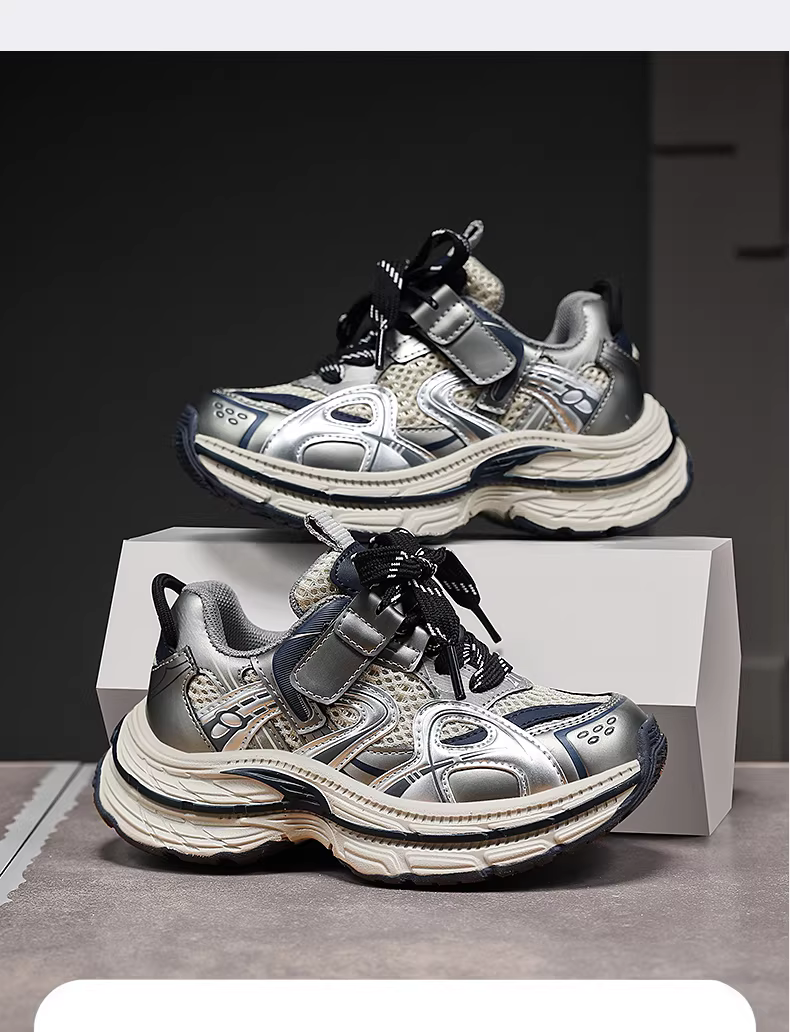 - Giày lưới trẻ em kiểu dáng giày bố mùa xuân/hè 2025, giày thời trang trẻ em nữ có khóa dán, kiểu dáng thời thượng, cá tính