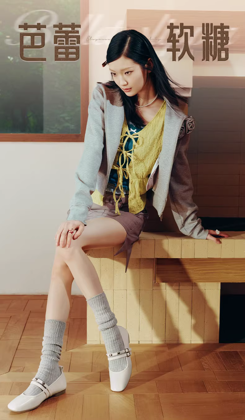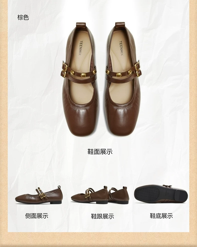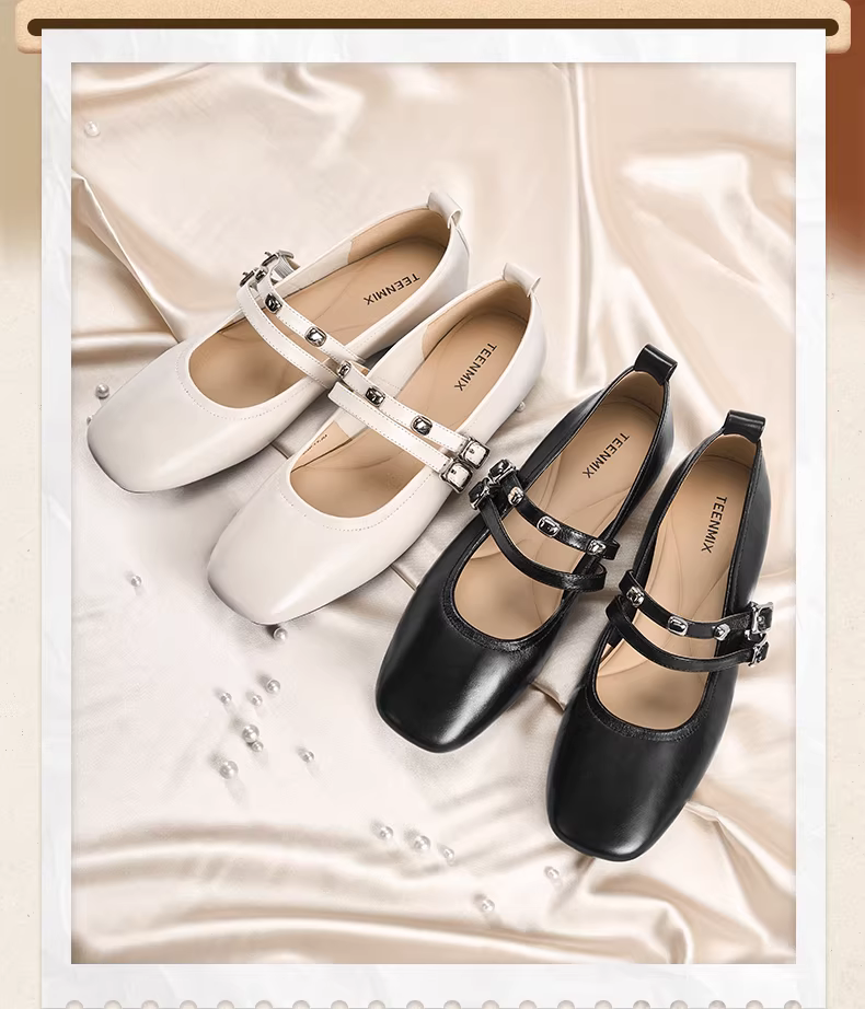 - Giày Mary Jane da kiểu retro Tianmeiyi Gummy Ballet đế bằng mềm mại cho nữ, giày đơn giản miệng nông đế mềm, mẫu mới Thu 2025.