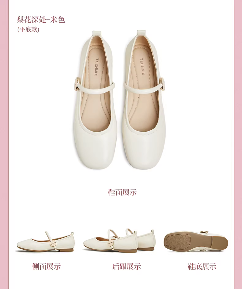 - Giày Mary Jane da Tianmeiyi không mũi, đế mềm, miệng nông, giày đơn nữ, giày bệt mùa xuân mới, giày dự tiệc