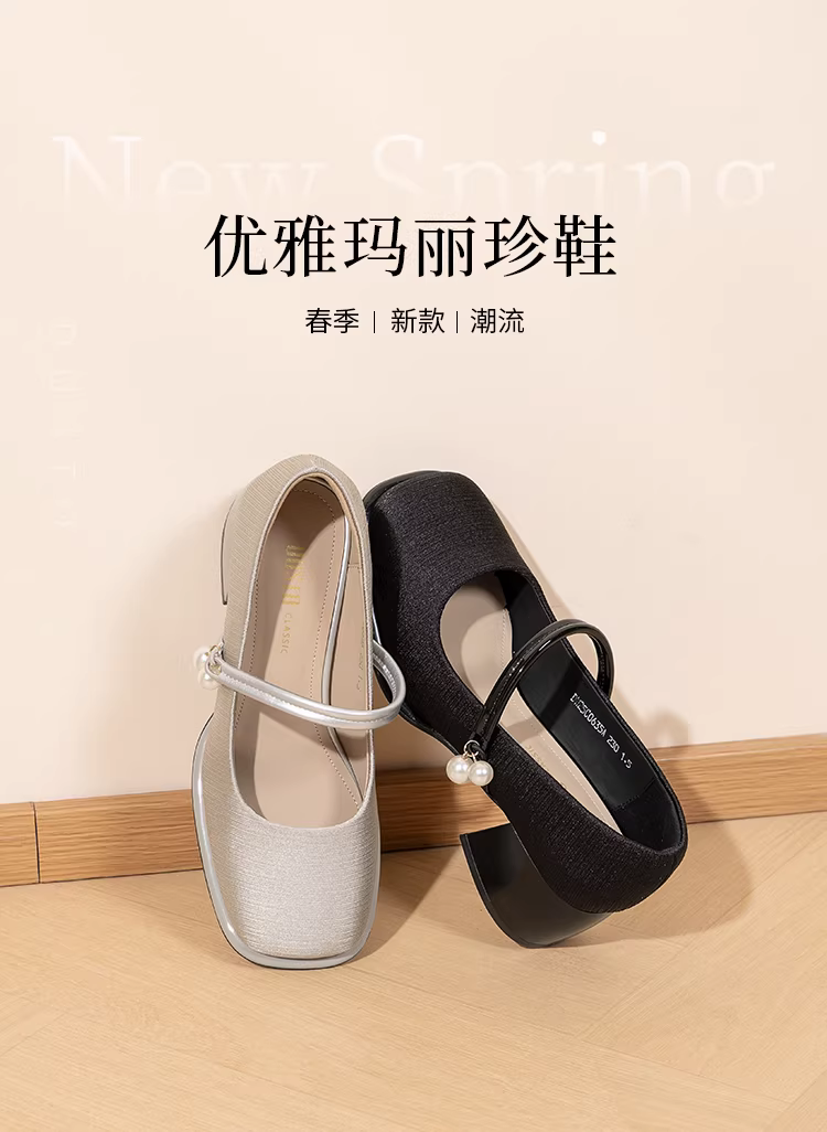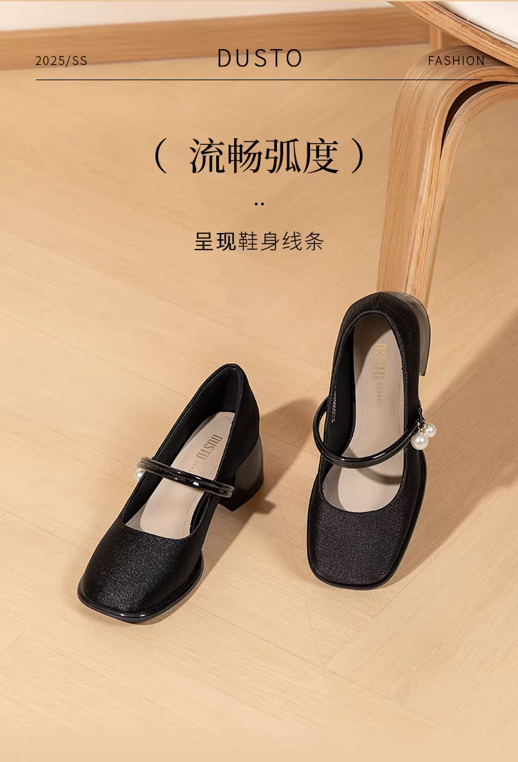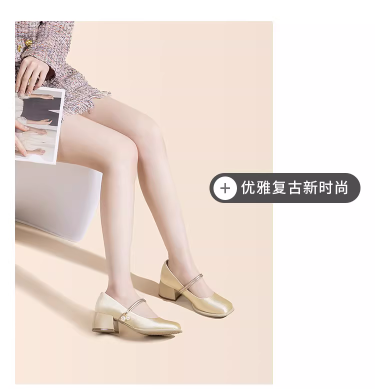 - Giày Mary Jane kiểu phương Đông cỡ lớn dành cho nữ, mẫu thu đông 2025, phối cùng chân váy, giày cao gót đế thô kiểu Pháp đính ngọc trai