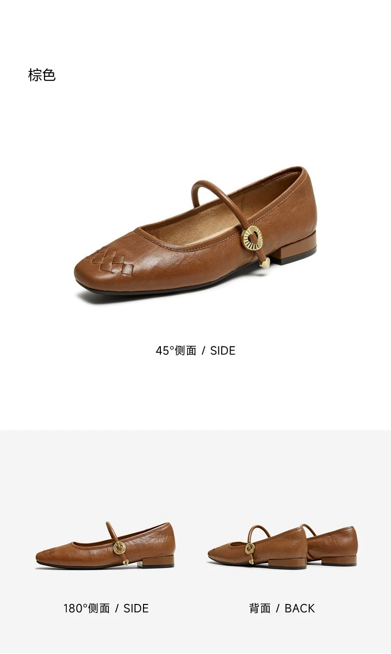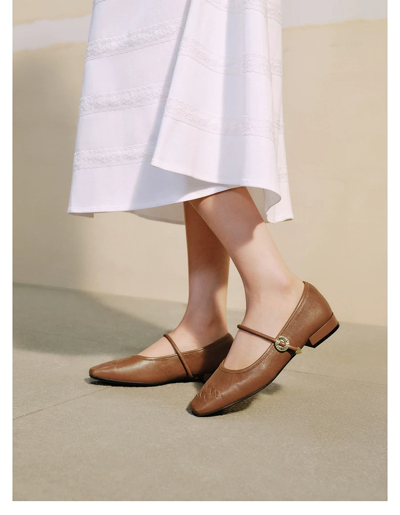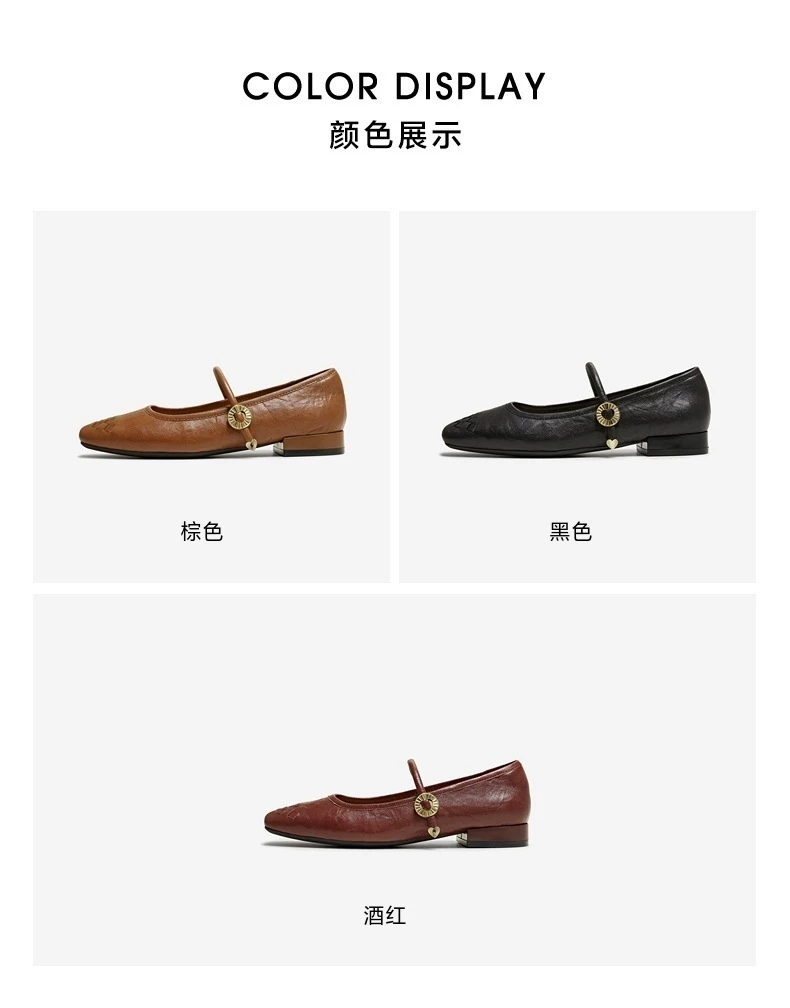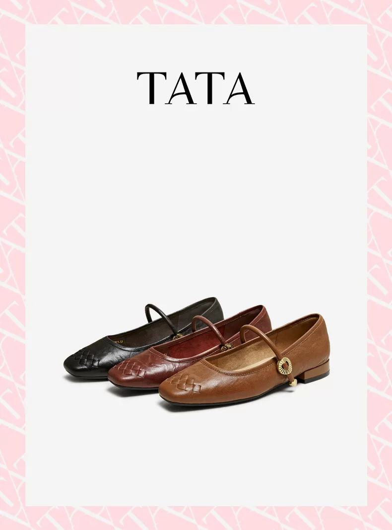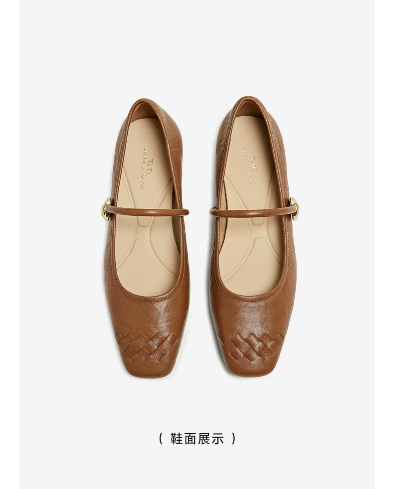 - Giày Mary Jane phong cách retro TATA Afternoon Manor dành cho nữ, giày da cừu nông, mùa đông 2025 USL01CQ5