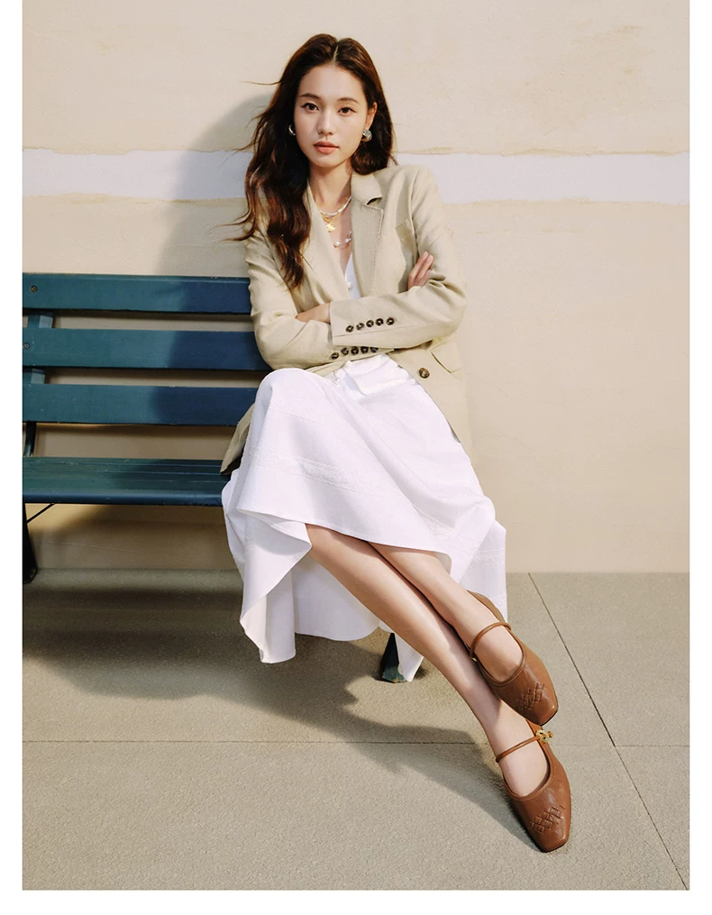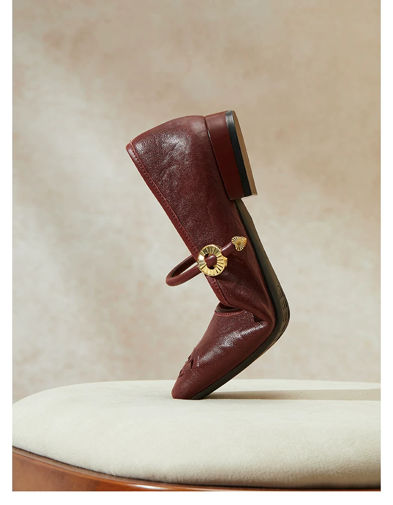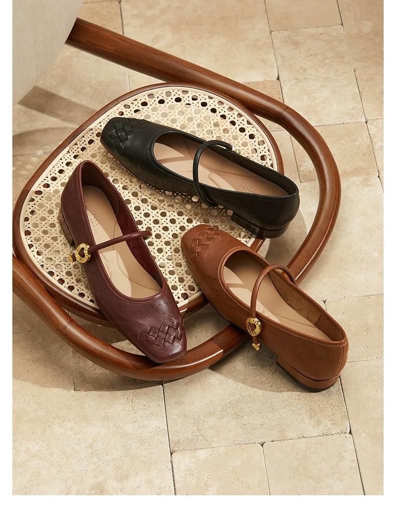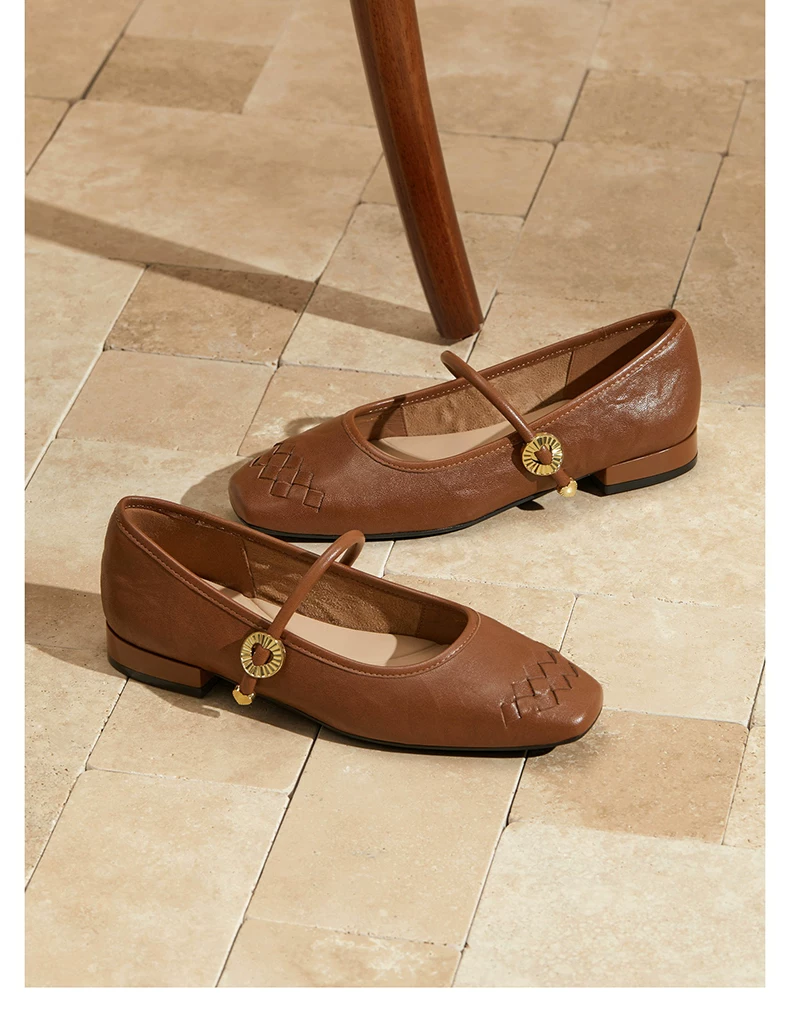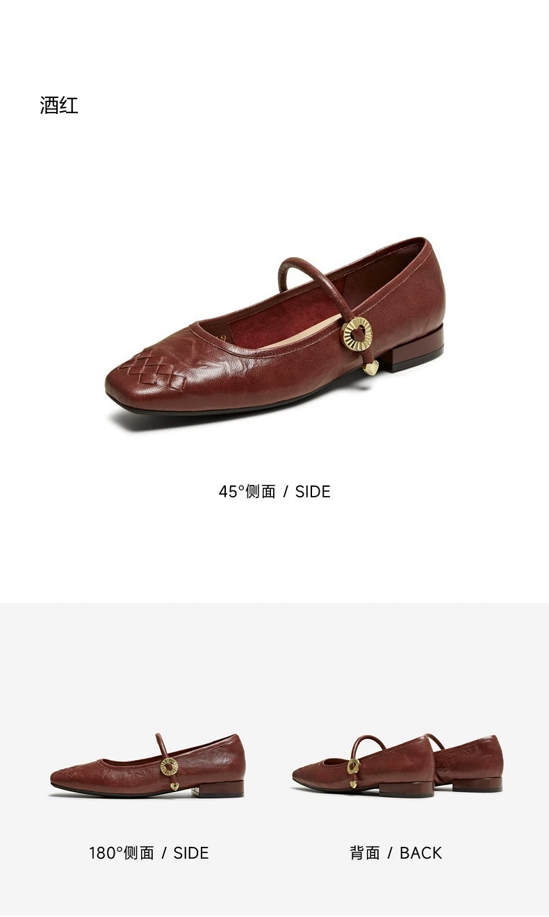 - Giày Mary Jane phong cách retro TATA Afternoon Manor dành cho nữ, giày da cừu nông, mùa đông 2025 USL01CQ5