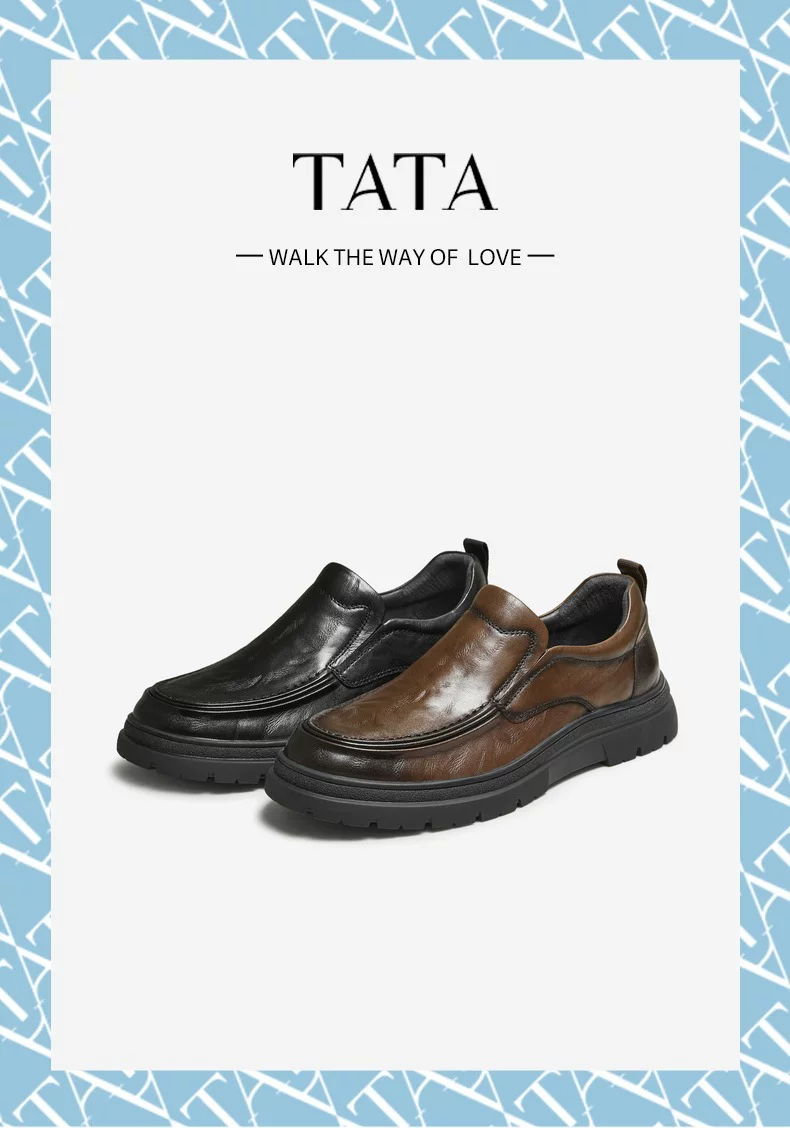 Giày nam TATA 2025 mới mùa đông, cùng kiểu dáng, màu trơn, thoải mái, đa năng, giày da thường TGD01CM5