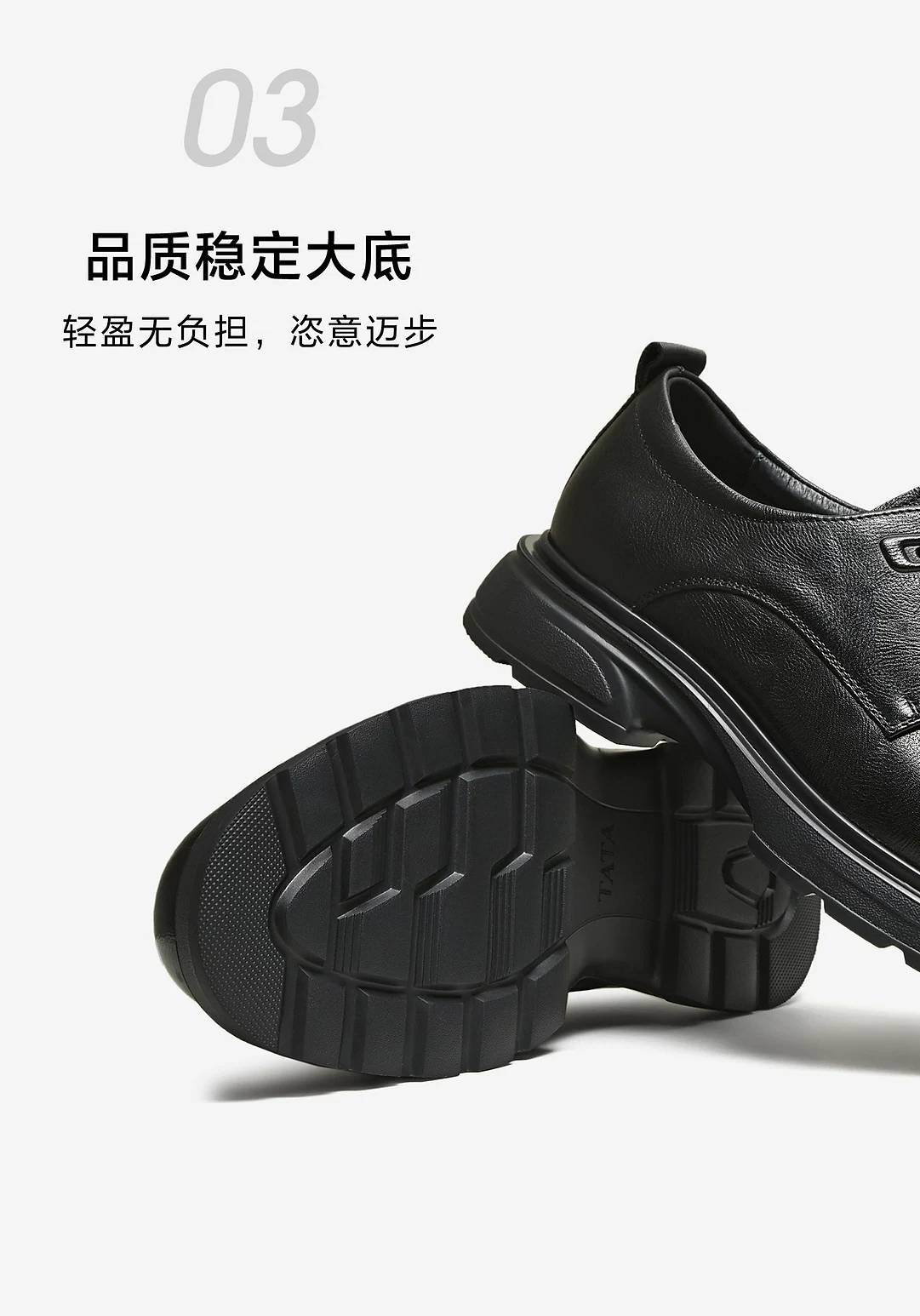- Giày nam TATA 2025 mùa đông mới thời trang giày thường ngày mũi tròn giày công sở da đen VPV01DM5