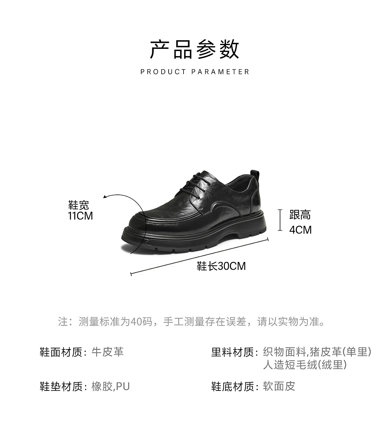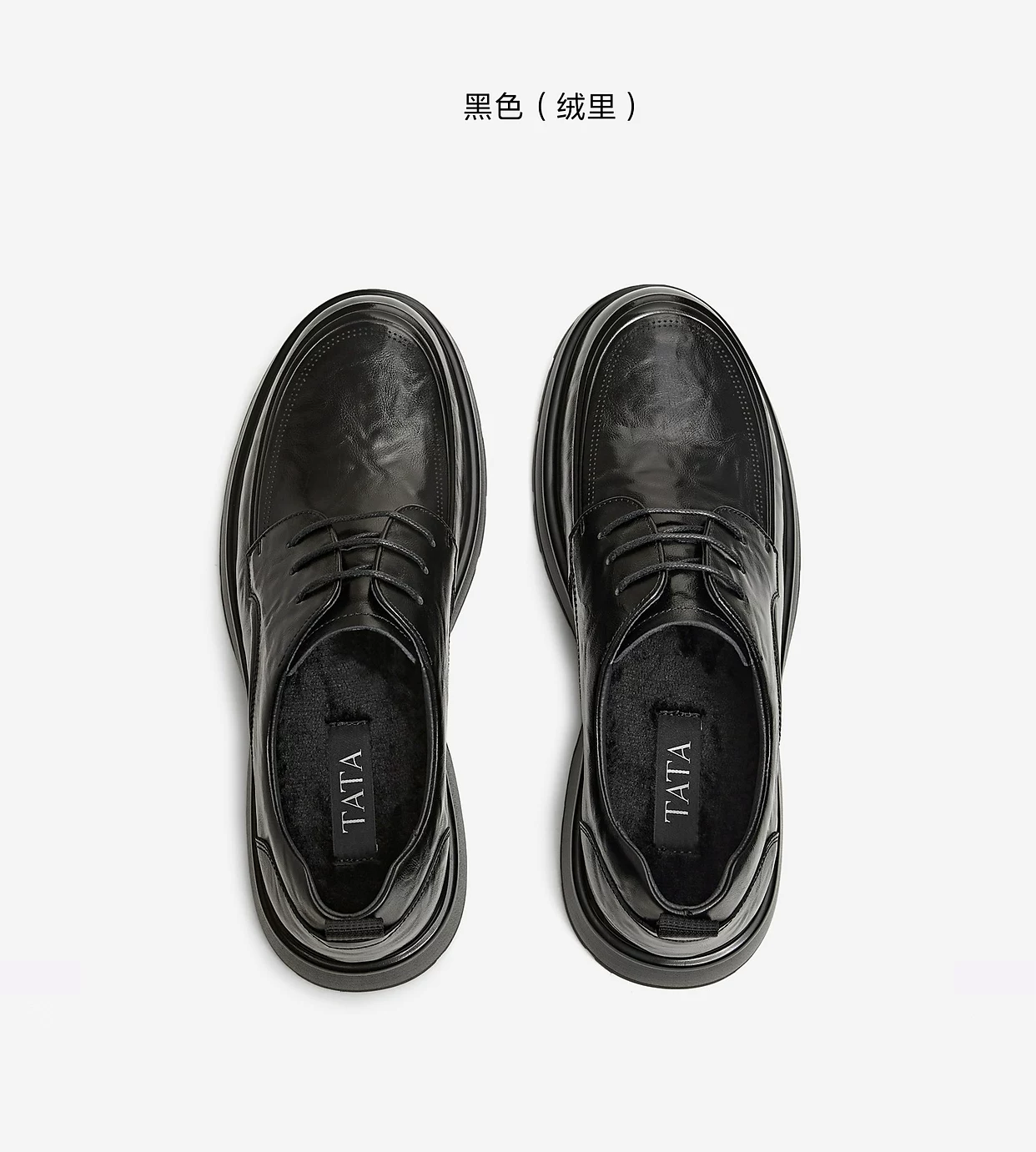 - Giày nam TATA mùa đông 2025, giày công sở mới, màu trơn, đa năng, giày da thường, màu đen, giày tăng chiều cao