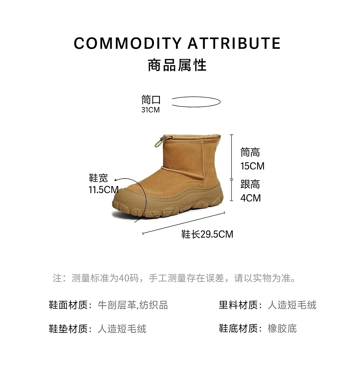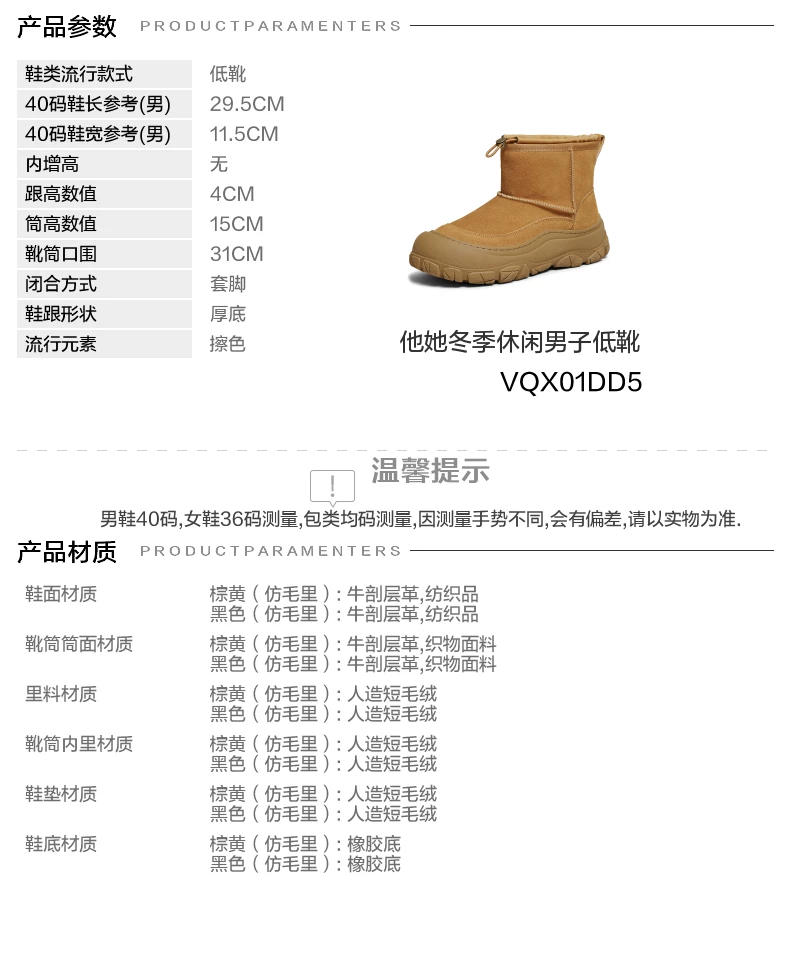 - Giày nam TATA Xuân 2025 Mẫu mới Giày bốt cotton đa năng Giày bốt tuyết nam lót lông VQX01DD5