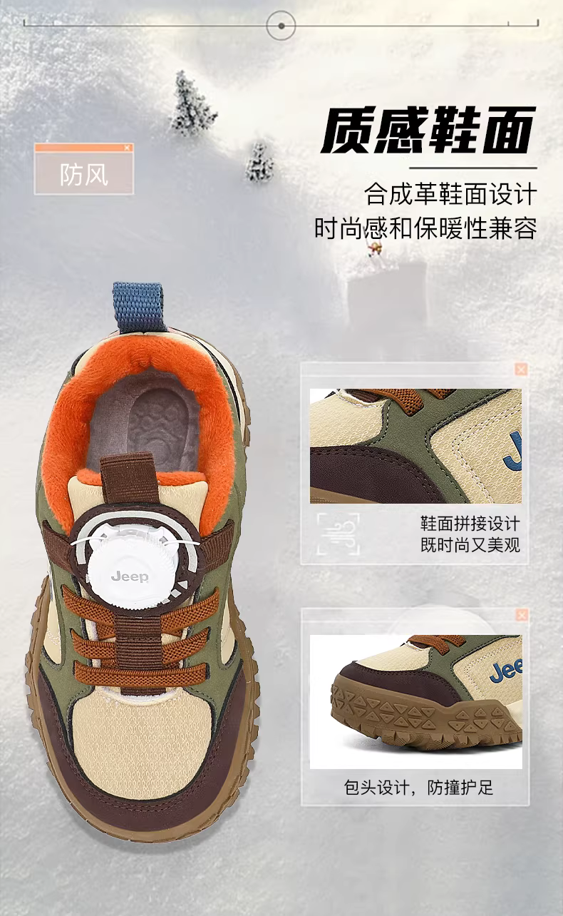 - Giày nam trẻ em Jeep, giày thể thao lót lông cừu, giày cotton hai lớp cho trẻ em, mẫu mới mùa đông 2025, giày đi bộ chống trượt cho trẻ lớn.