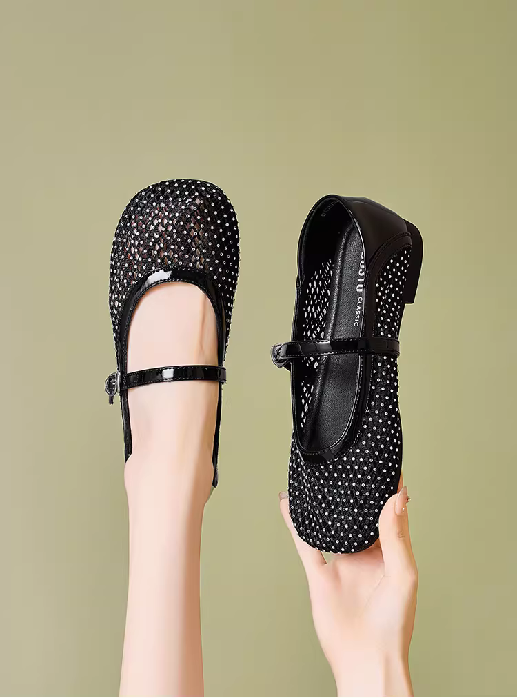 - Giày nữ Dadong dệt thoáng khí kiểu rỗng năm 2025, giày nữ mùa hè đế mềm mát, giày bệt, sandal Mary Jane