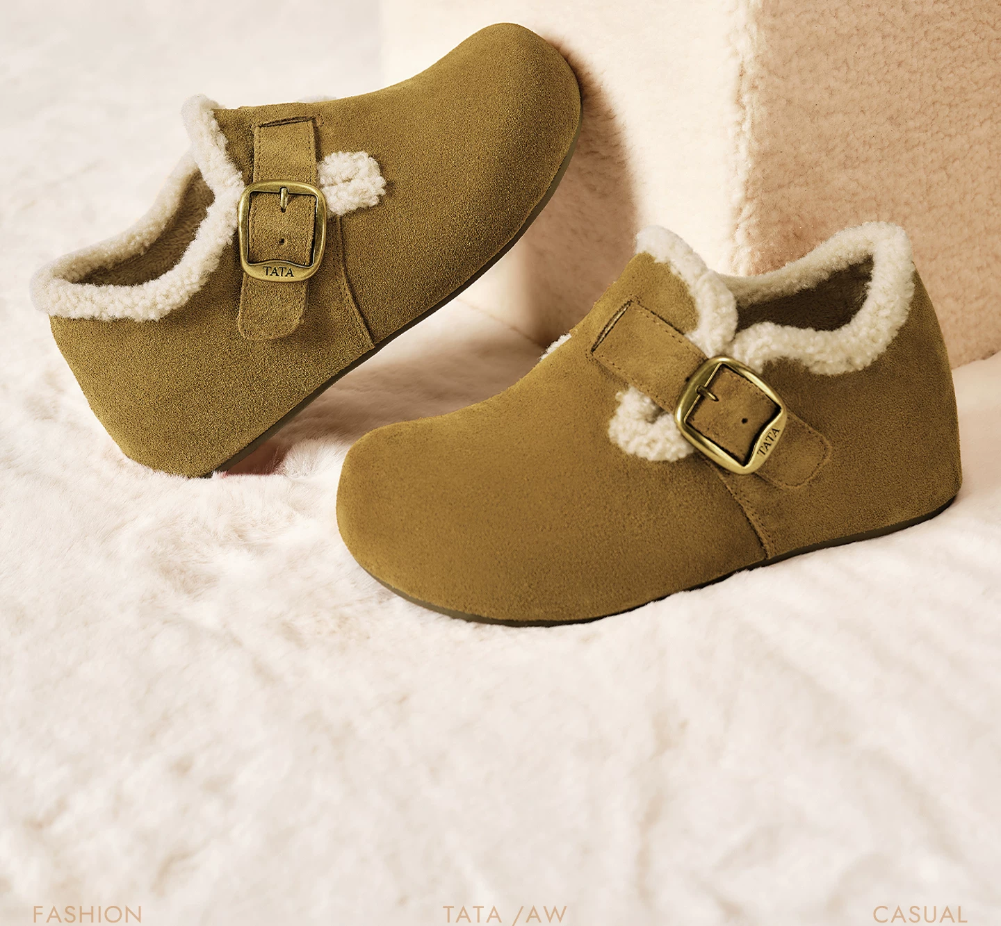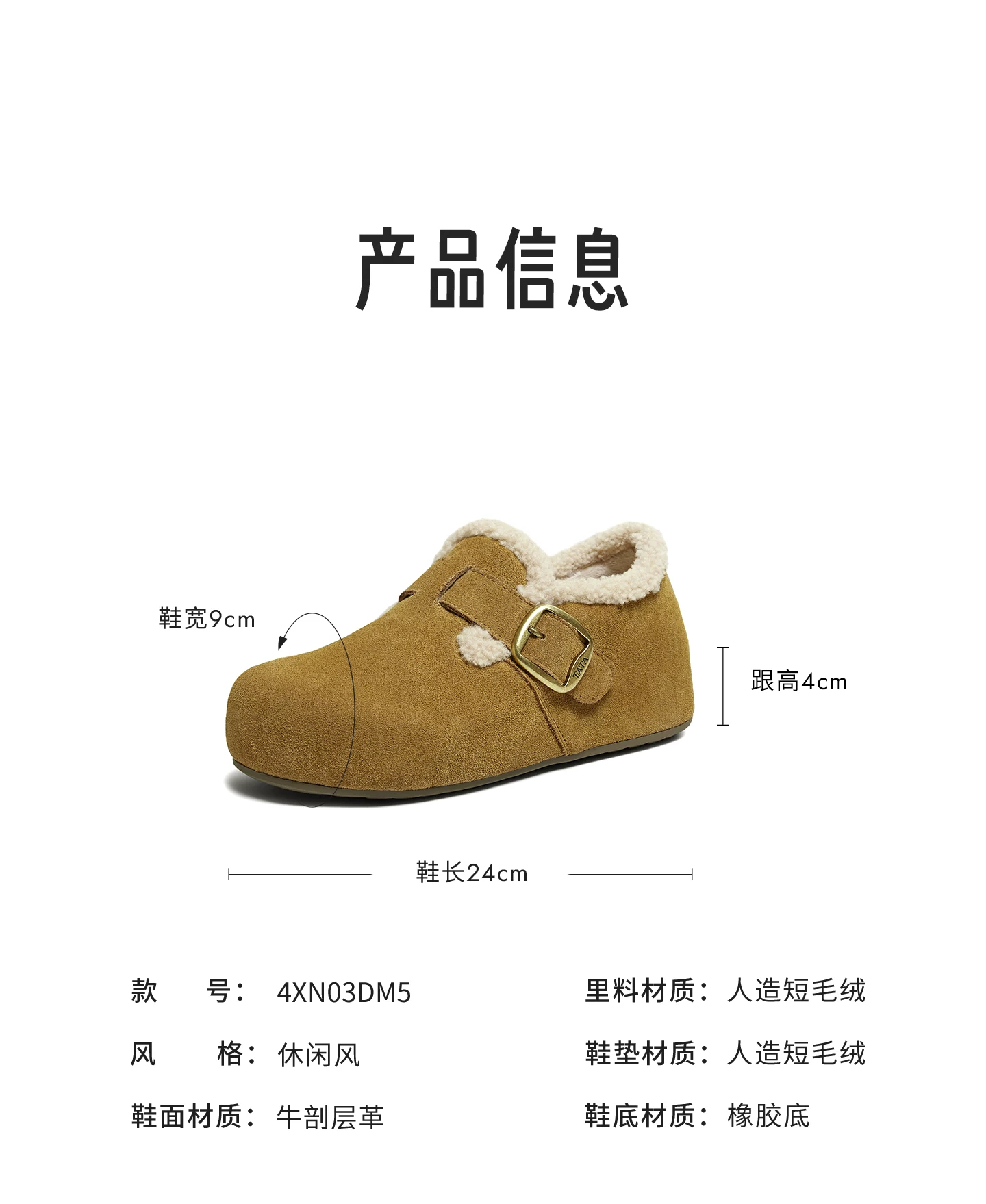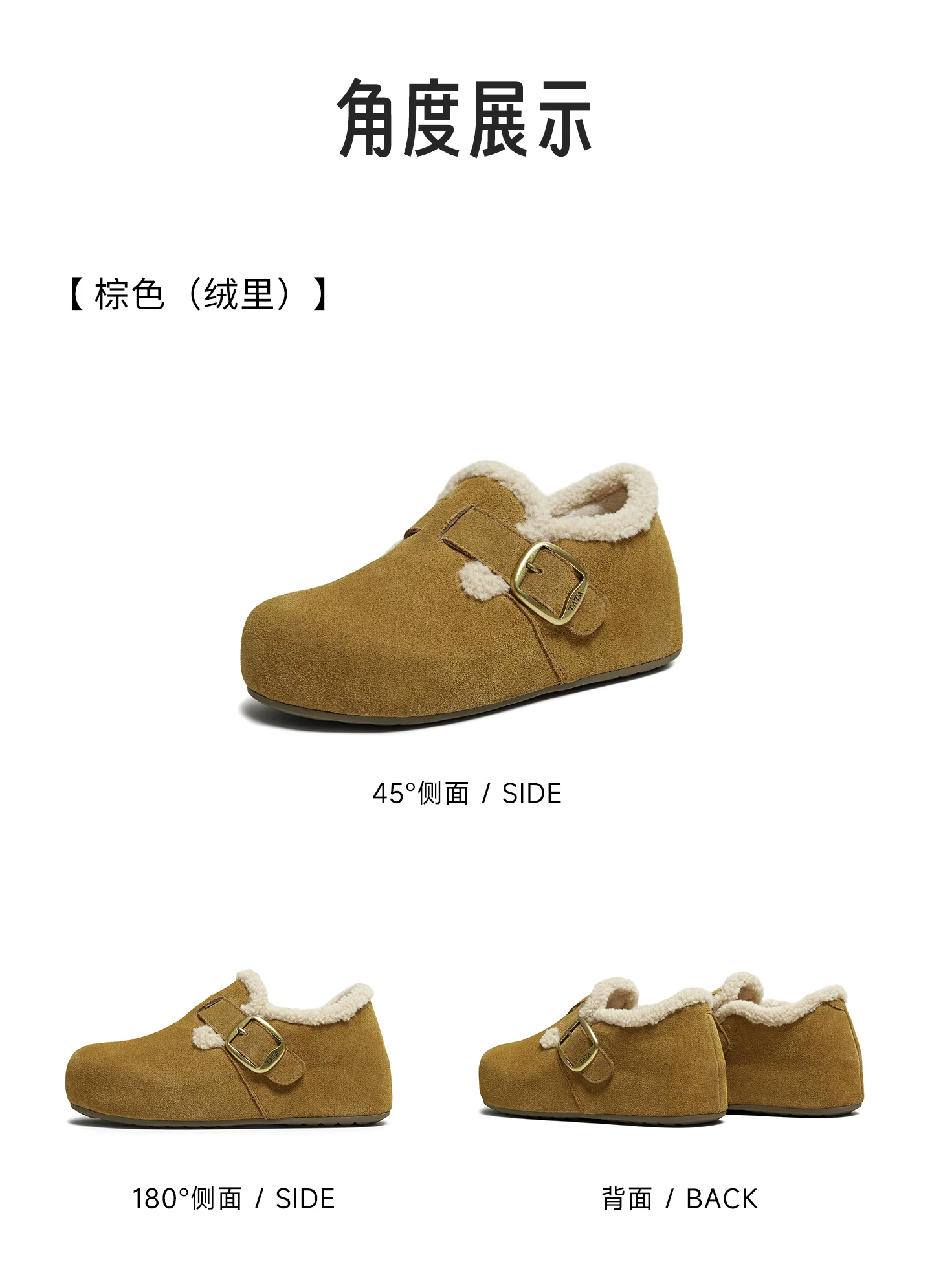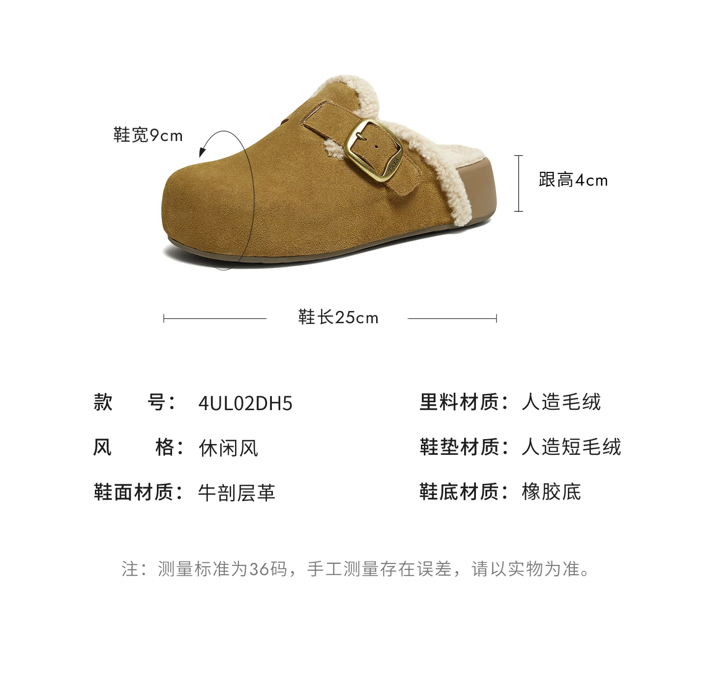 - Giày nữ kiểu TATA Chestnut Birkenstock giày đế dày sang trọng mới giày thường ngày có lông dép bông 4UL02DH5