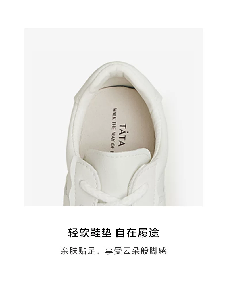 - Giày Nữ Tata 2023 Thời Trang Mùa Xuân Giày Đa Năng Đế Dày Buộc Dây Giày Thể Thao Màu Trắng W4EA1CM4