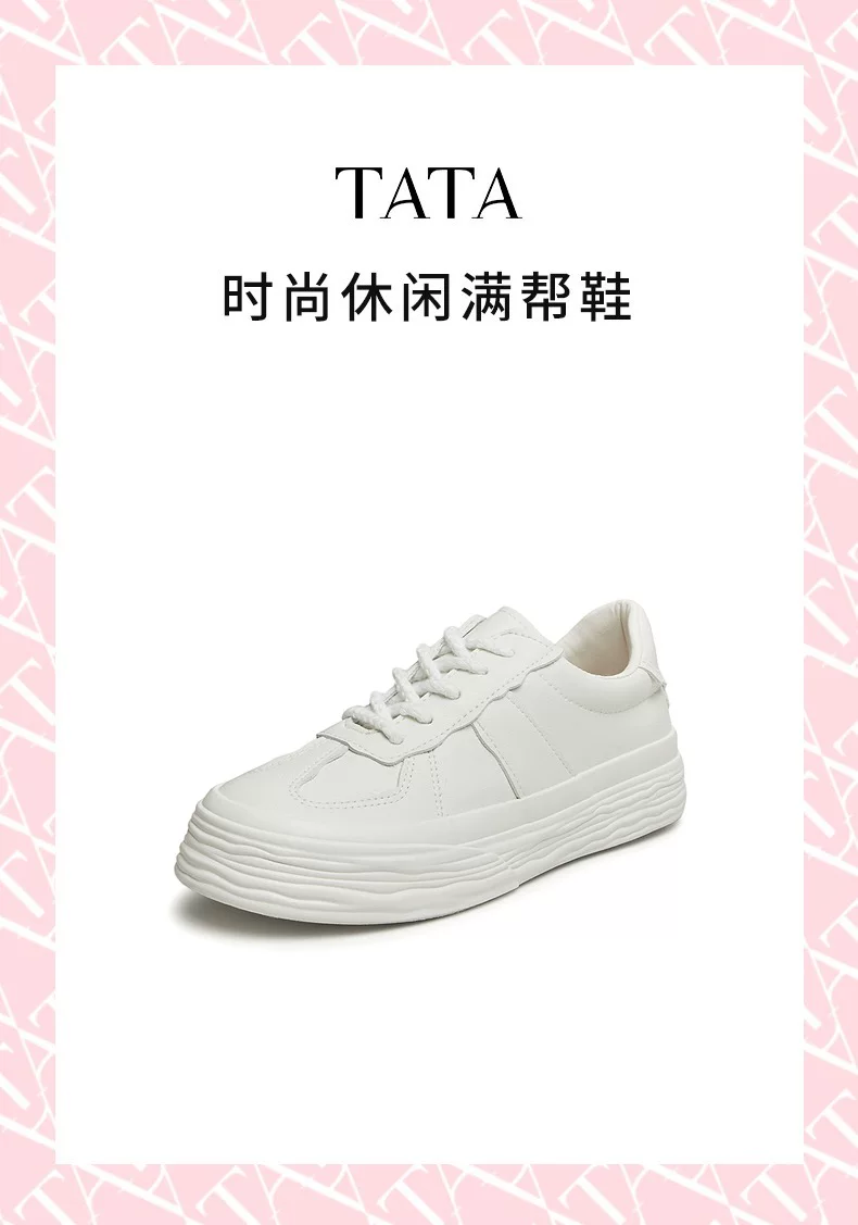 Giày Nữ Tata 2023 Thời Trang Mùa Xuân Giày Đa Năng Đế Dày Buộc Dây Giày Thể Thao Màu Trắng W4EA1CM4