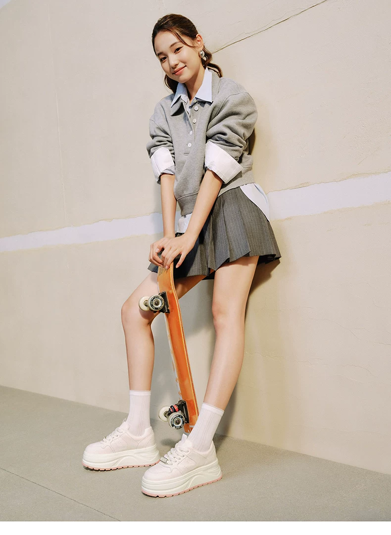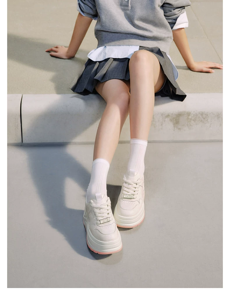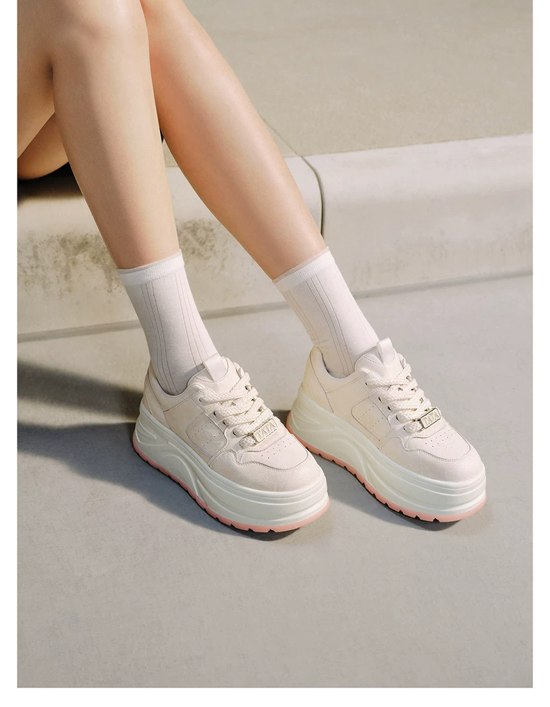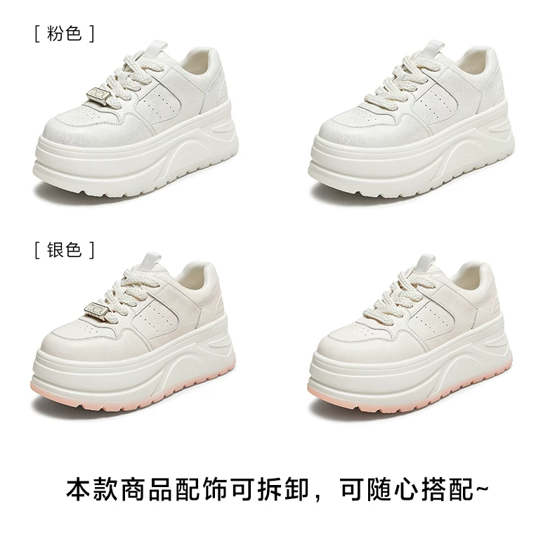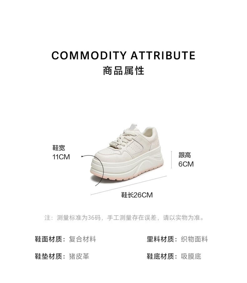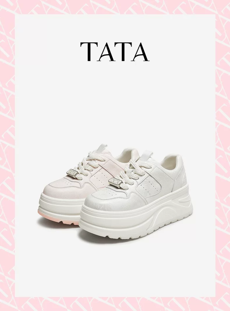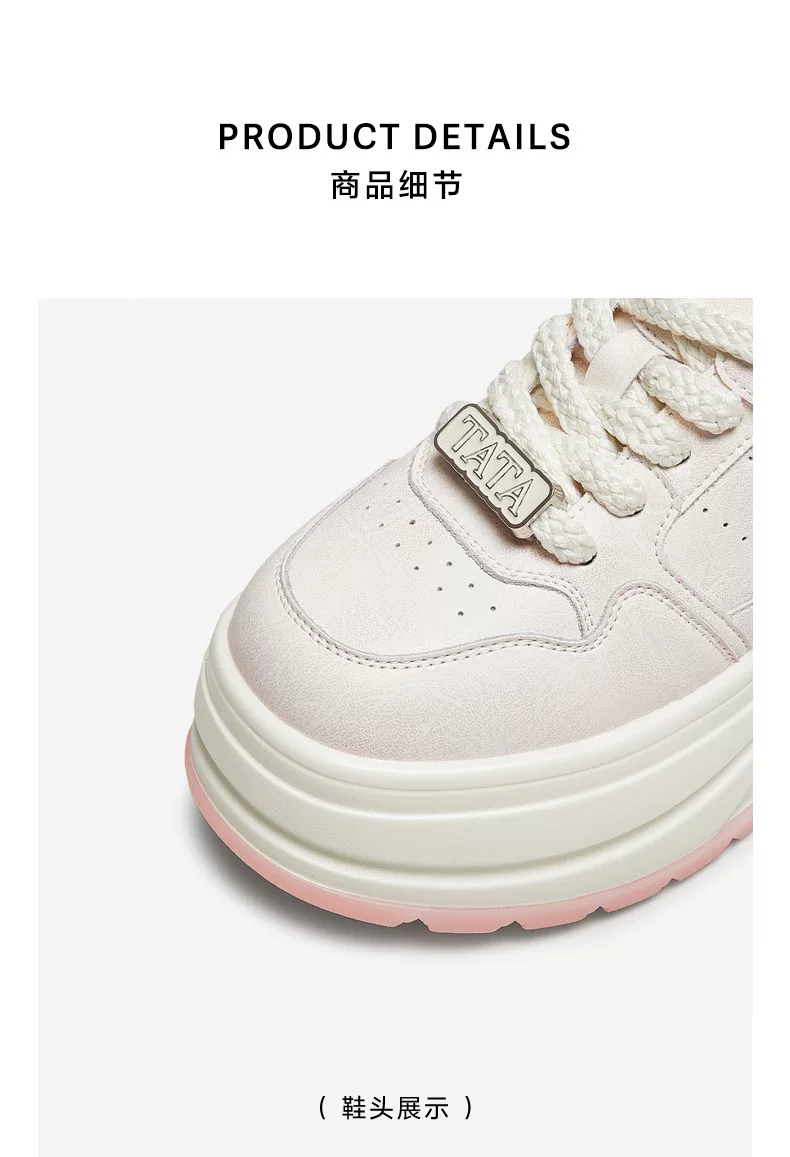 - Giày nữ TATA 2025 Giày trắng mới Giày thể thao đa năng Giày thường Giày đế dày Tăng chiều cao CP202CM5